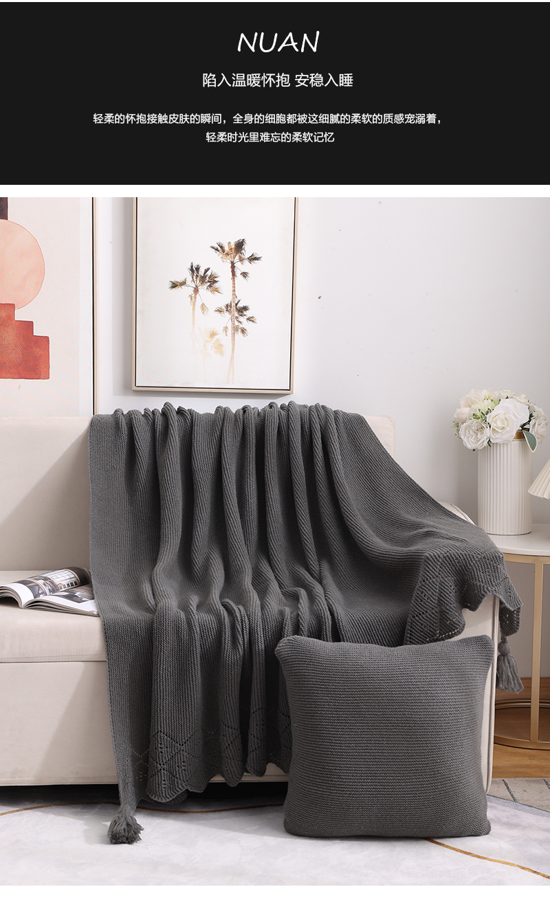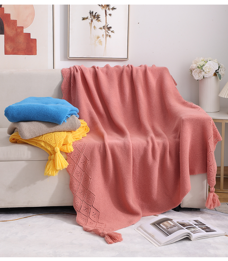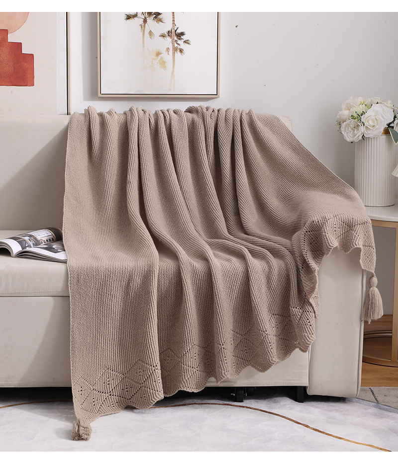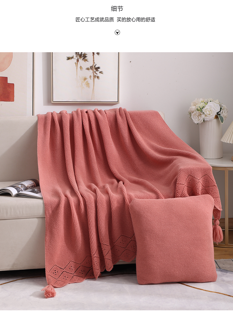 商品名称:(总)肖恩毯业 2025新款鹿毛绒针织毯纯色素色螺纹镂空苏头北欧毛毯复古沙发毯休闲毯子