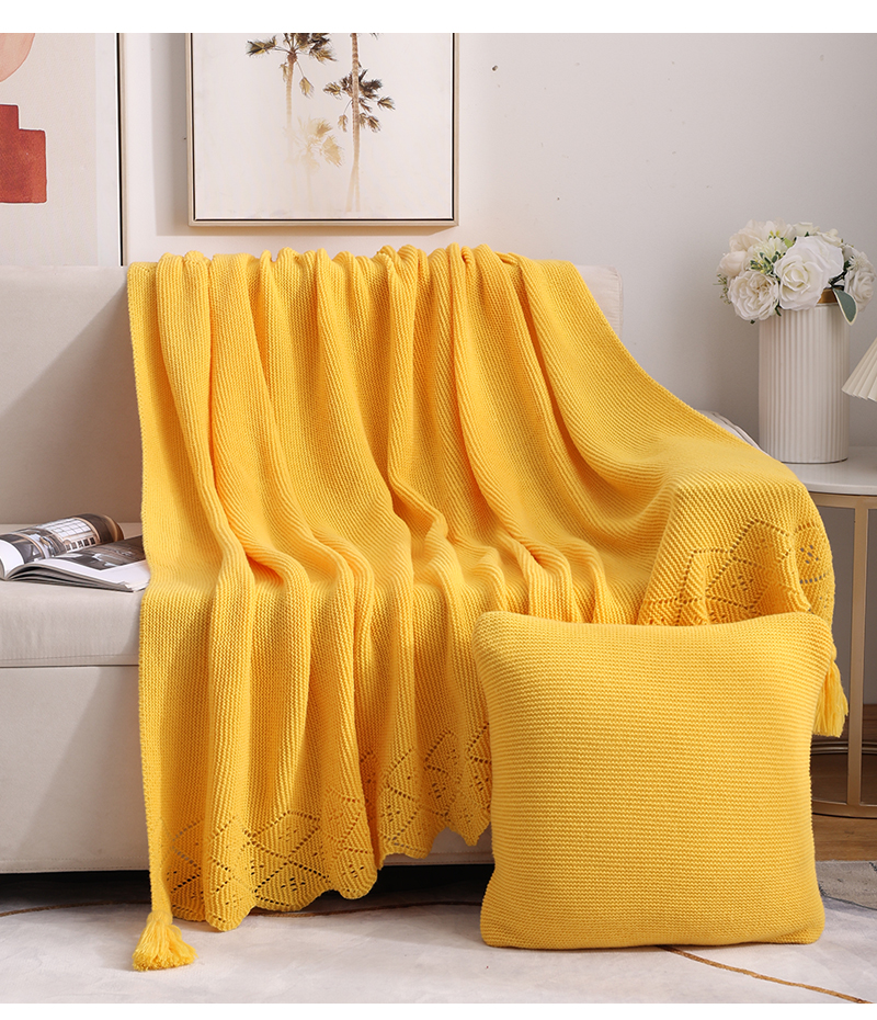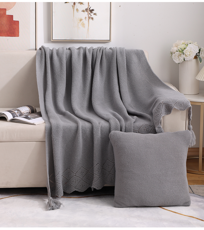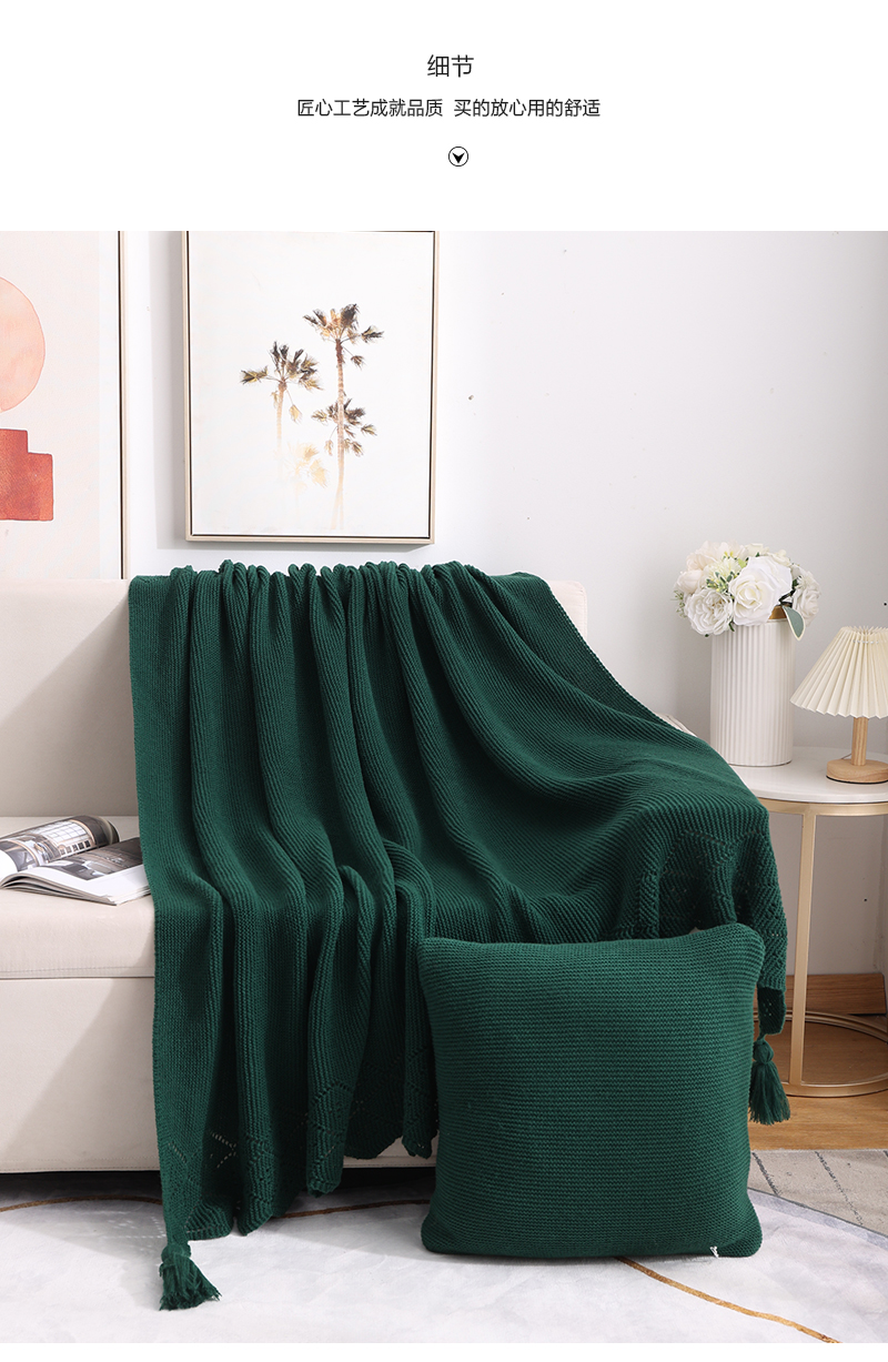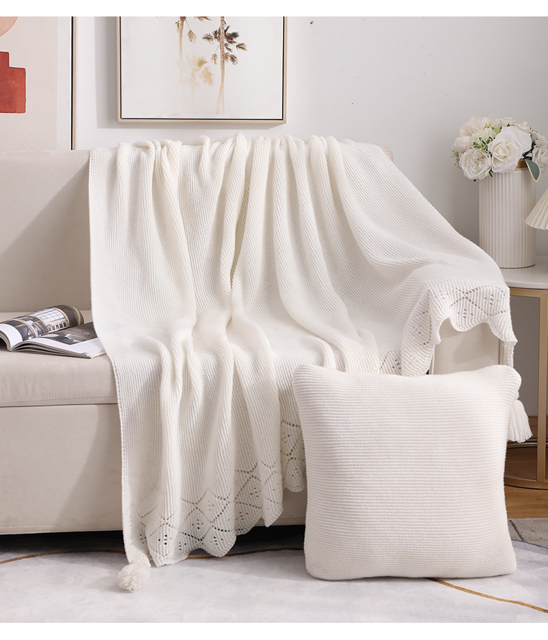 商品名称:(总)肖恩毯业 2025新款鹿毛绒针织毯纯色素色螺纹镂空苏头北欧毛毯复古沙发毯休闲毯子