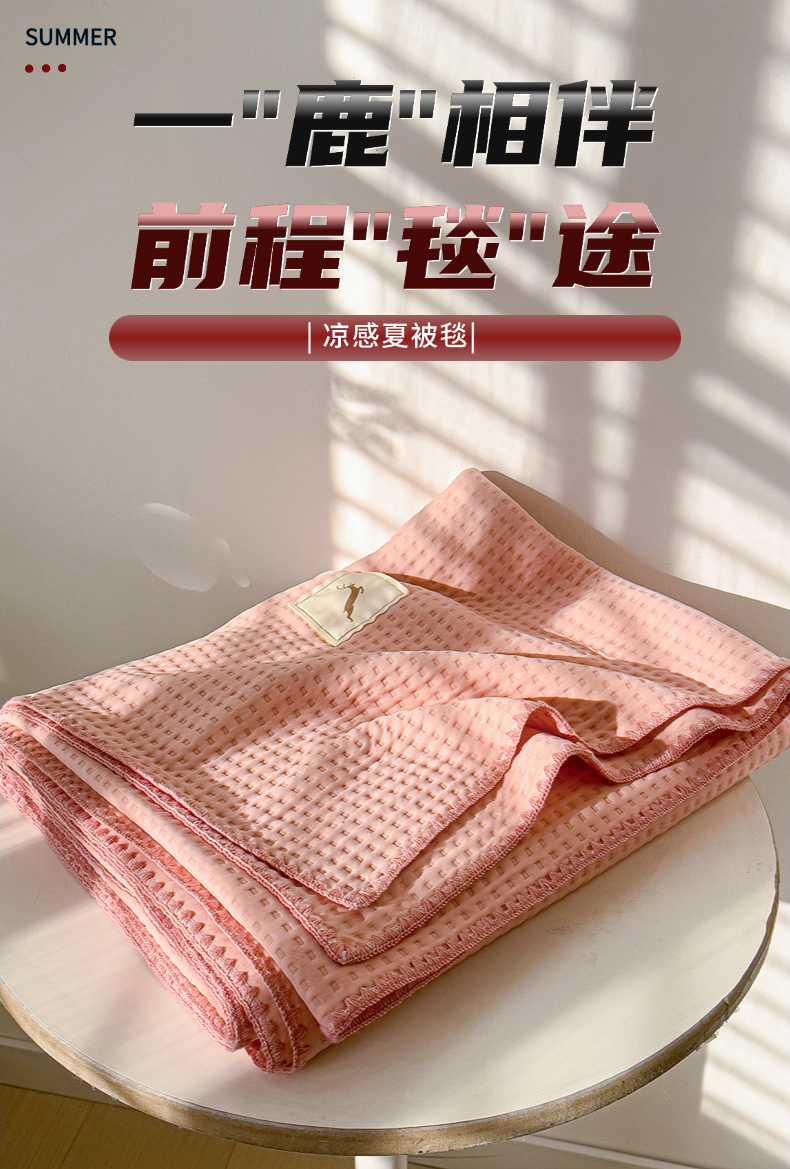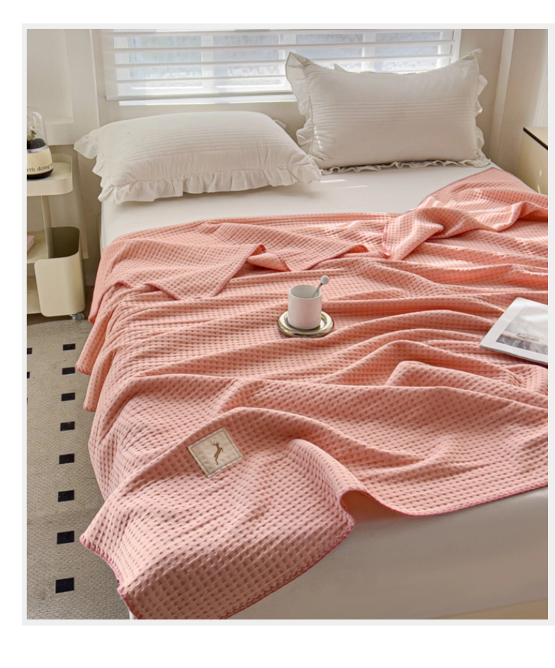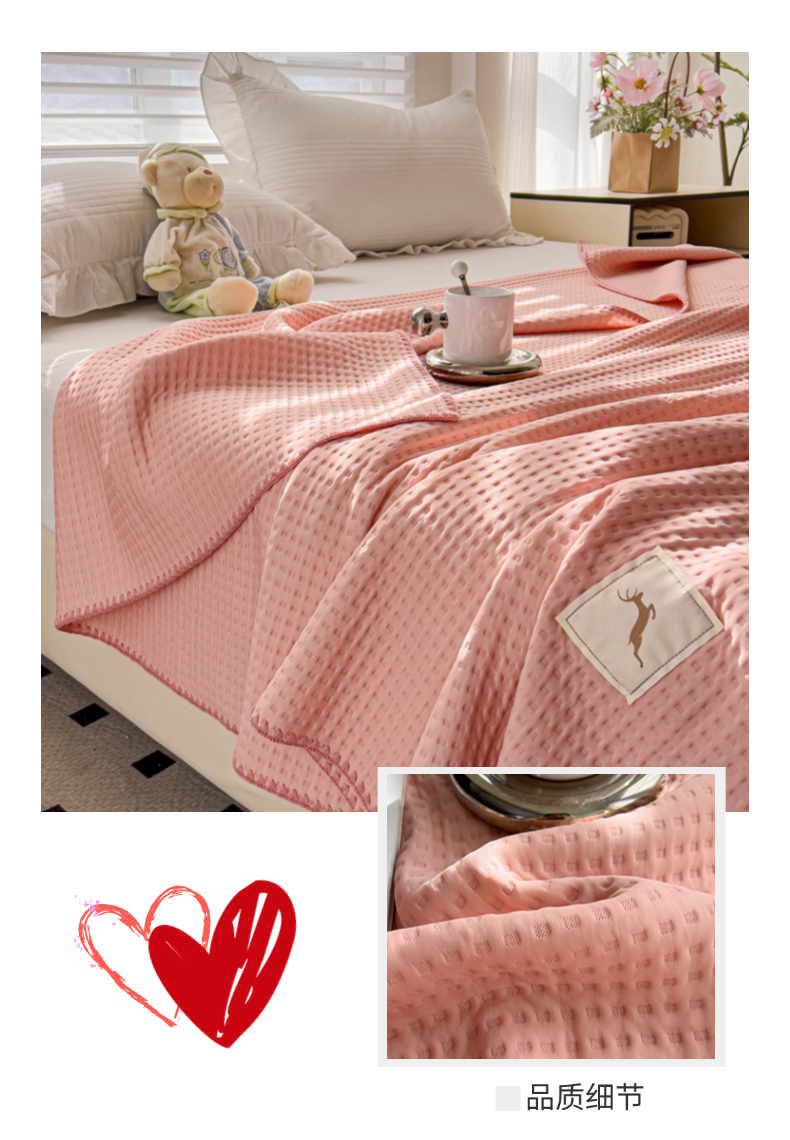 十九色 2025新款全尺寸三角针盖毯夏被华夫格双面冷感夏被毯 淡绛红