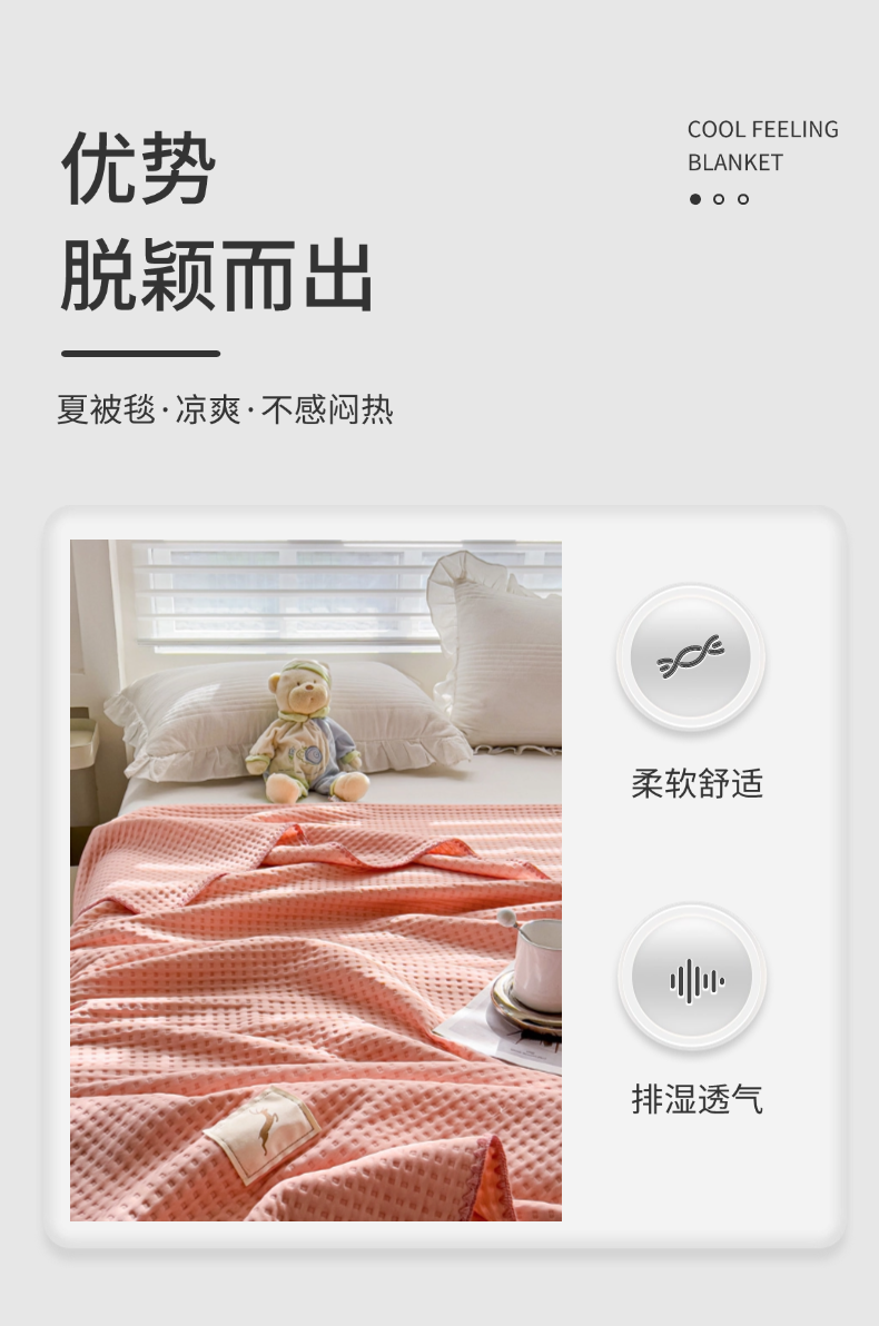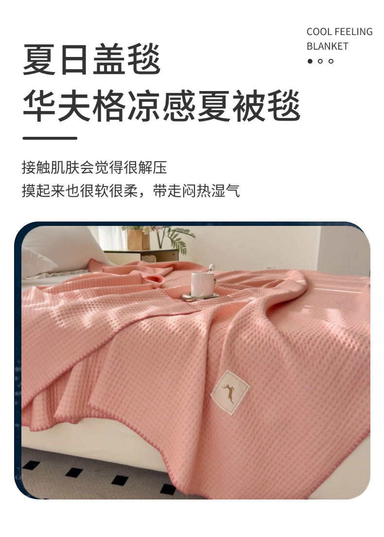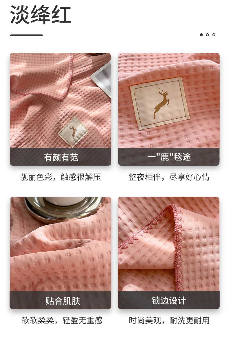 商品名称:十九色 2025新款全尺寸三角针盖毯夏被华夫格双面冷感夏被毯 淡绛红