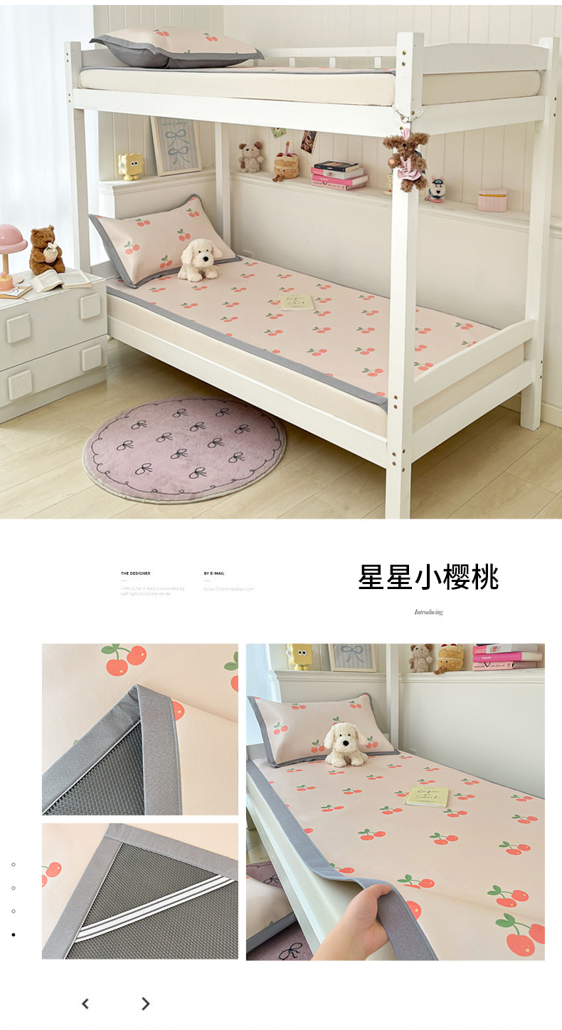 商品名称:川悦生活2025新款600D立体宽边印花冰丝席学生床 星星小樱桃
