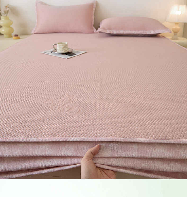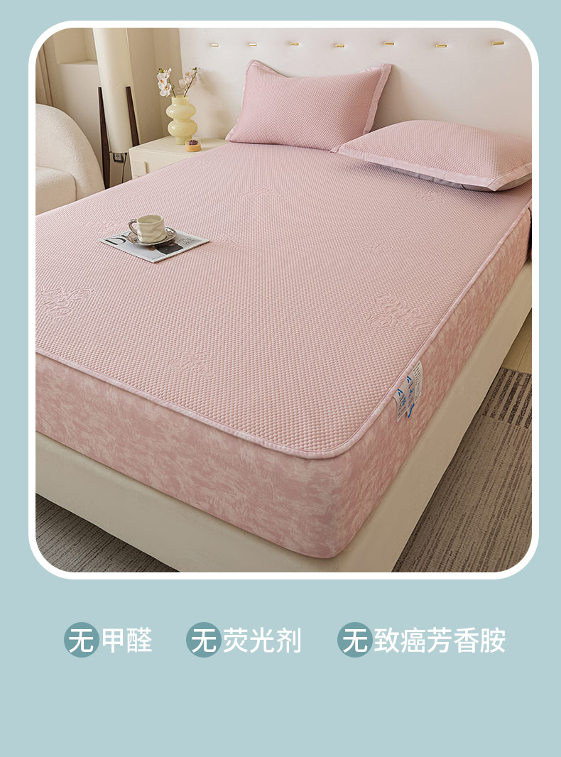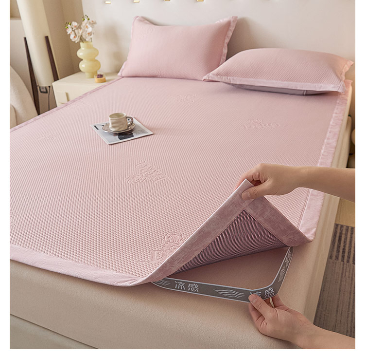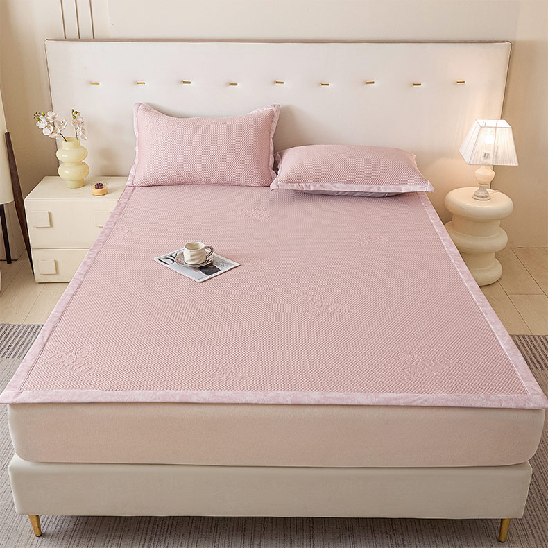 鑫琪莱 2025新款5D立体雕花凉感豆豆冰丝席凉席席子系列 床笠款-玫瑰-桃粉