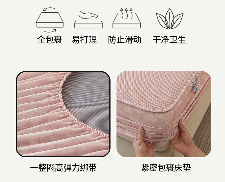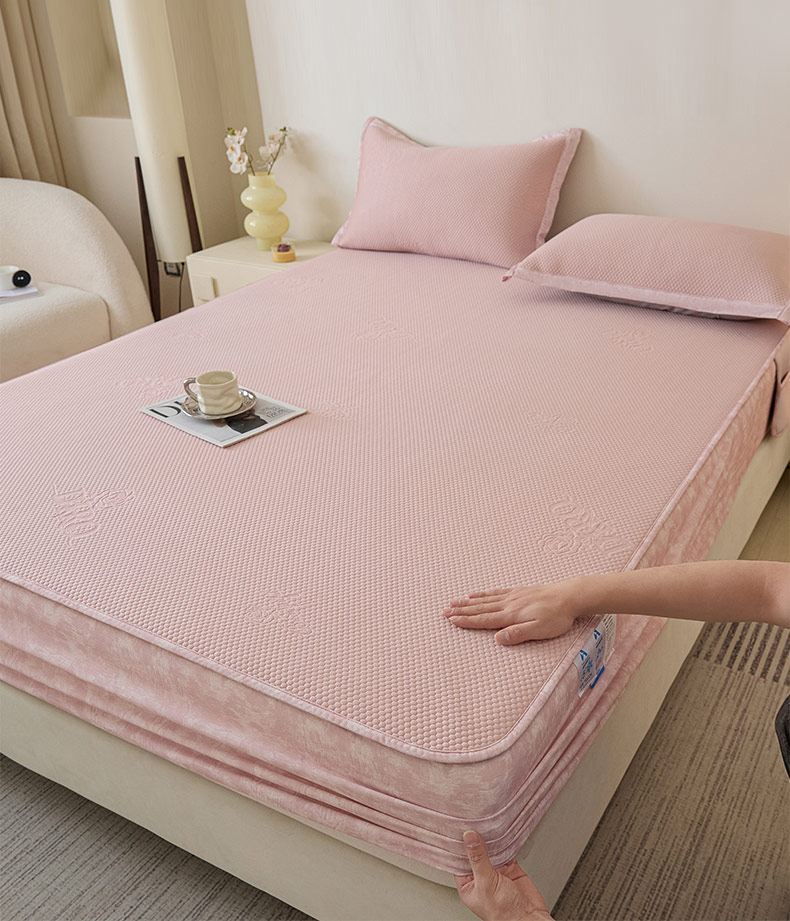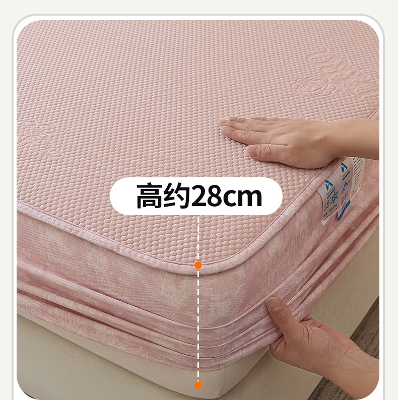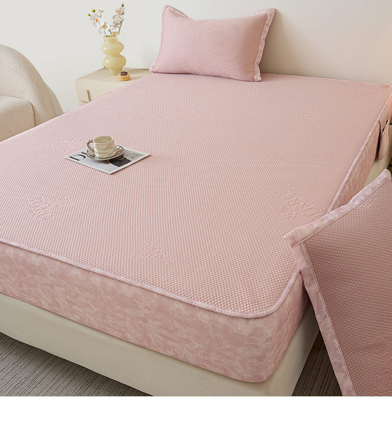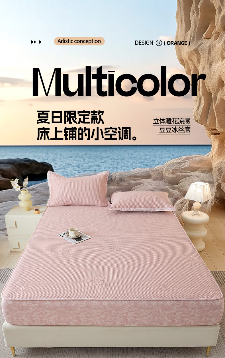 鑫琪莱 2025新款5D立体雕花凉感豆豆冰丝席凉席席子系列 床笠款-玫瑰-桃粉