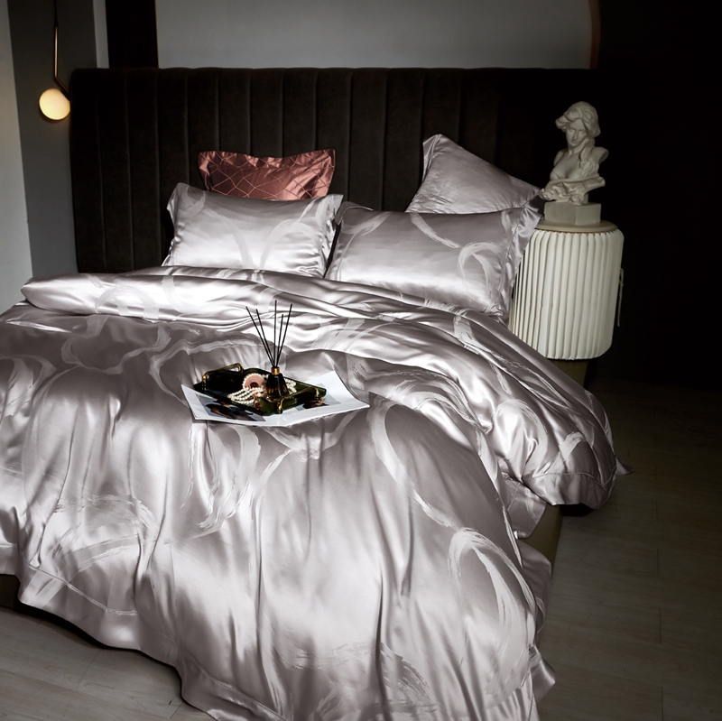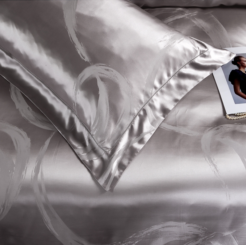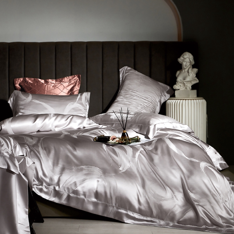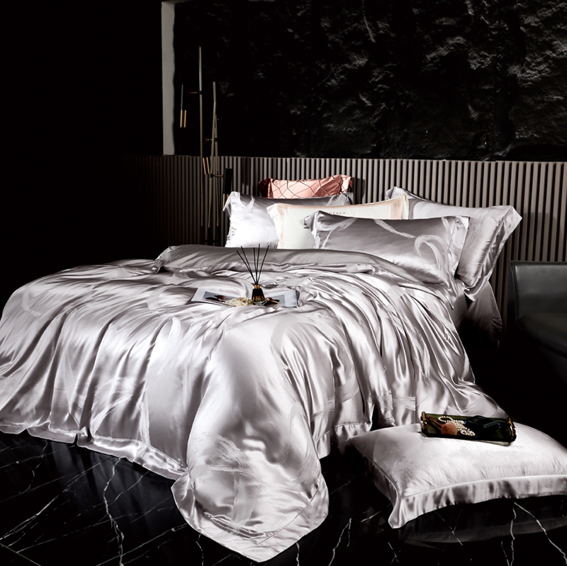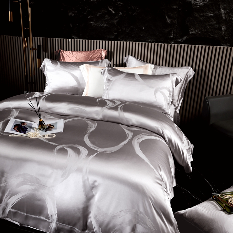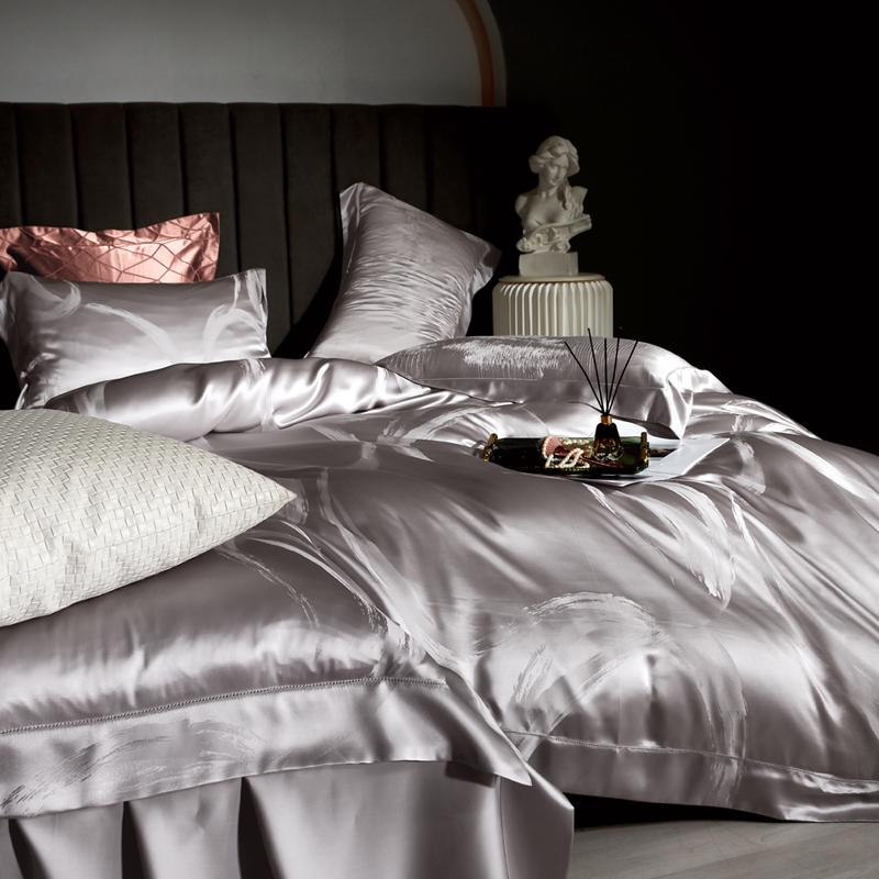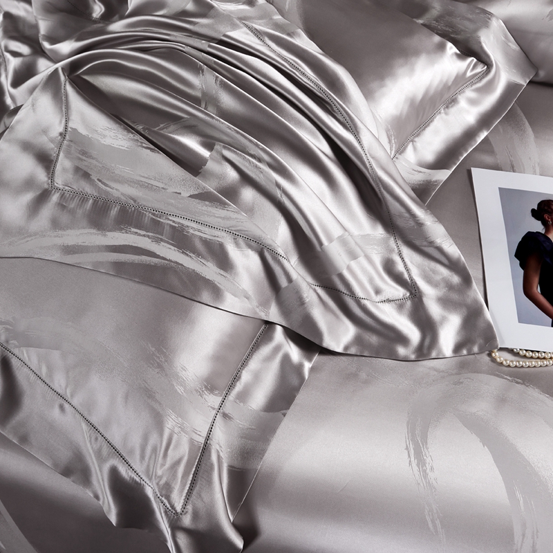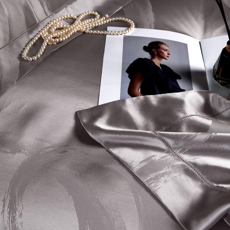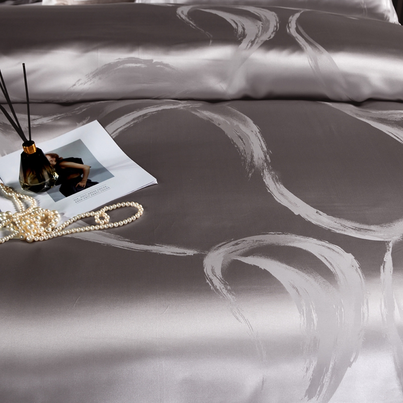商品名称:晋瑞 红顶鹅绒馆 2025真丝天丝大提花四件套 芳华灰