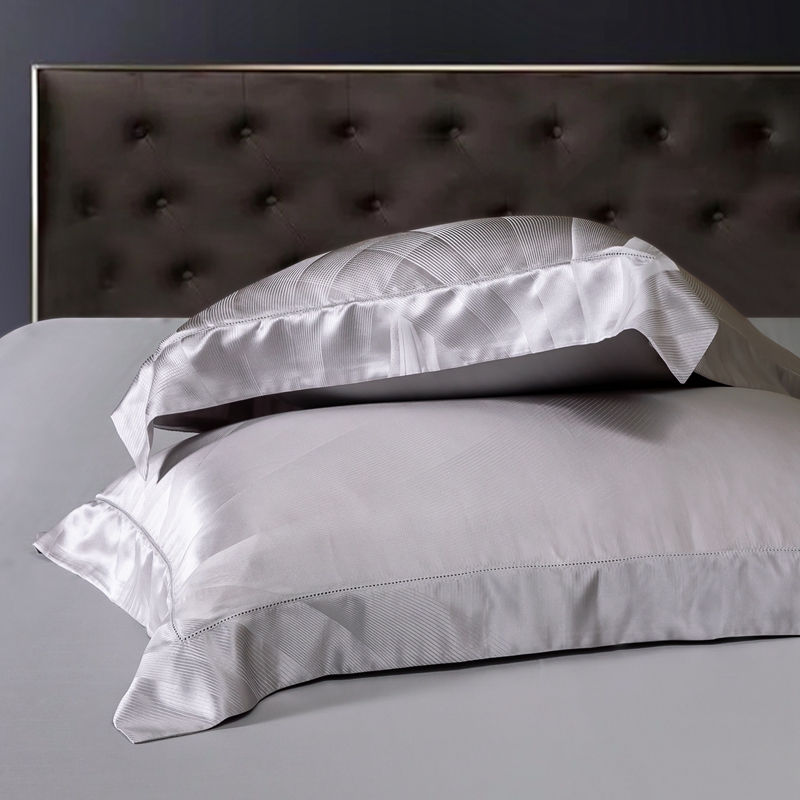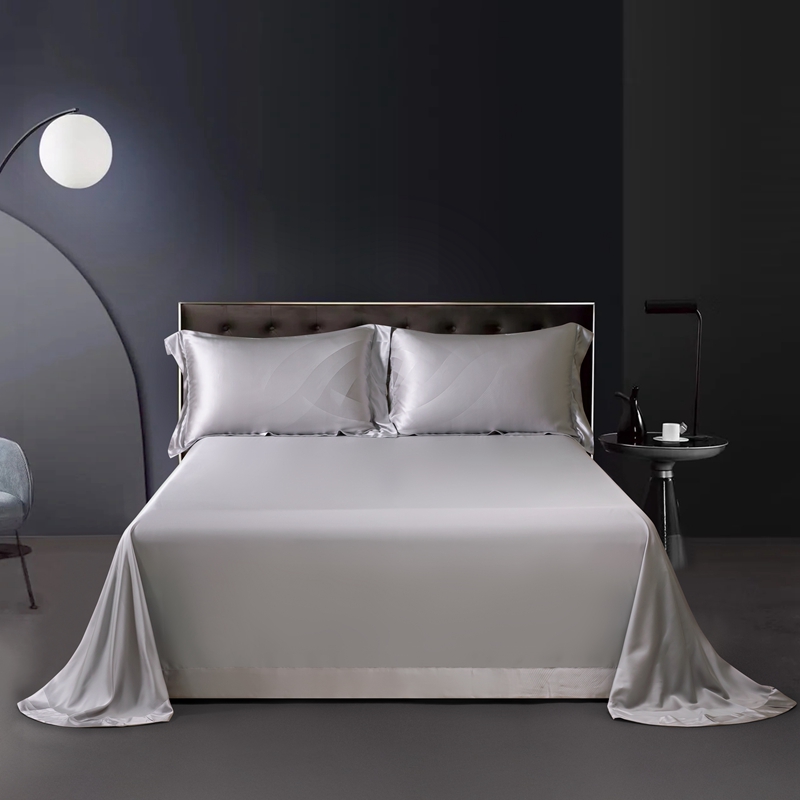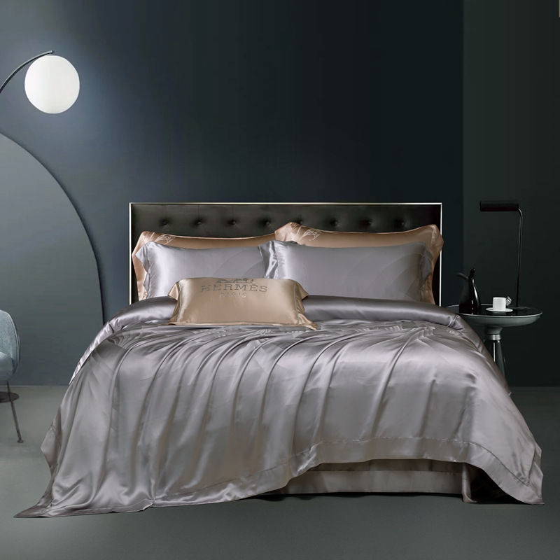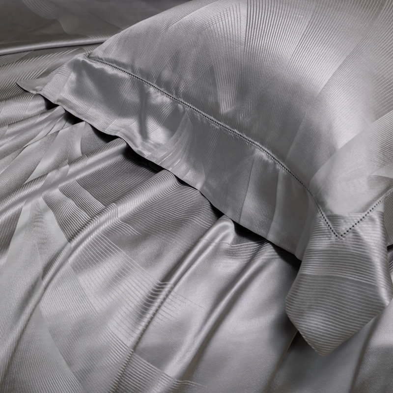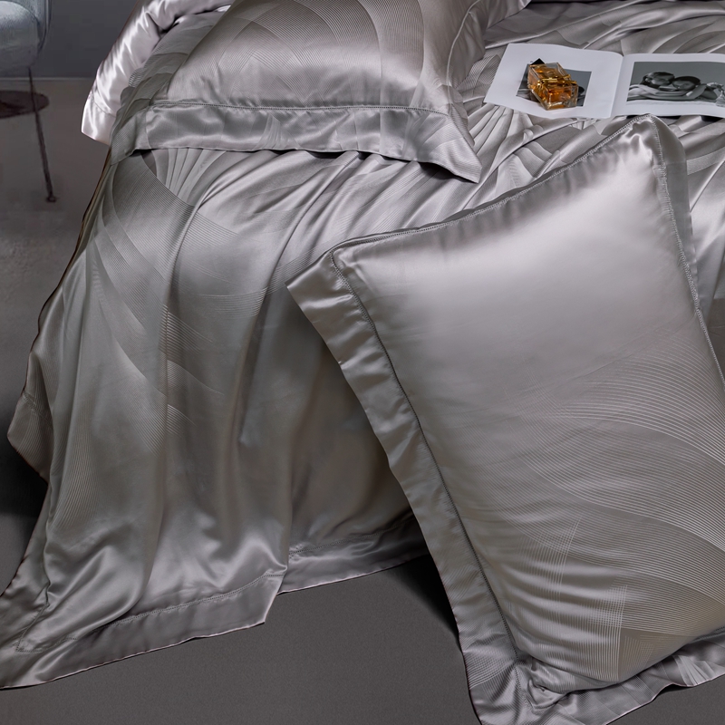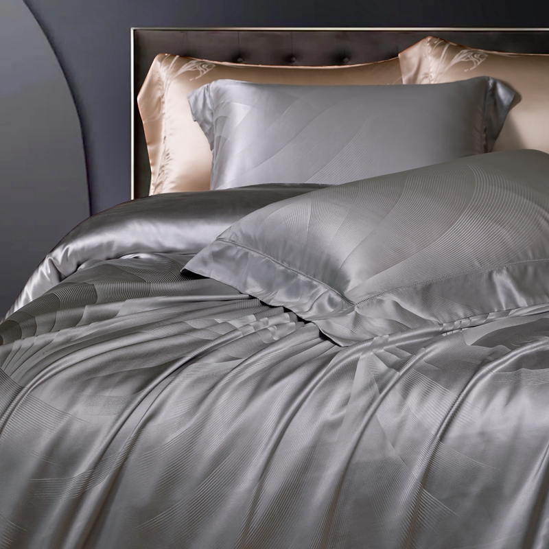 商品名称:晋瑞 红顶鹅绒馆 2025真丝天丝大提花四件套 陌上诗灰色