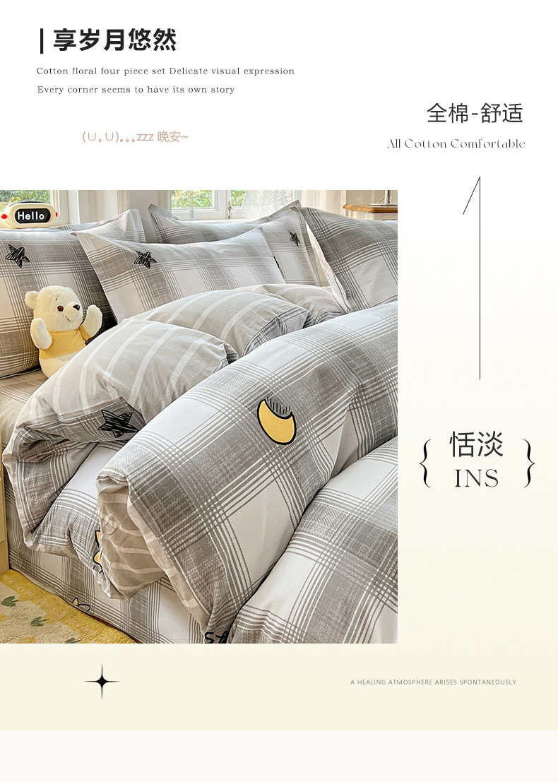 商品名称:世爵 2025新款全棉印花小清新套件系列-四件套 星空印记