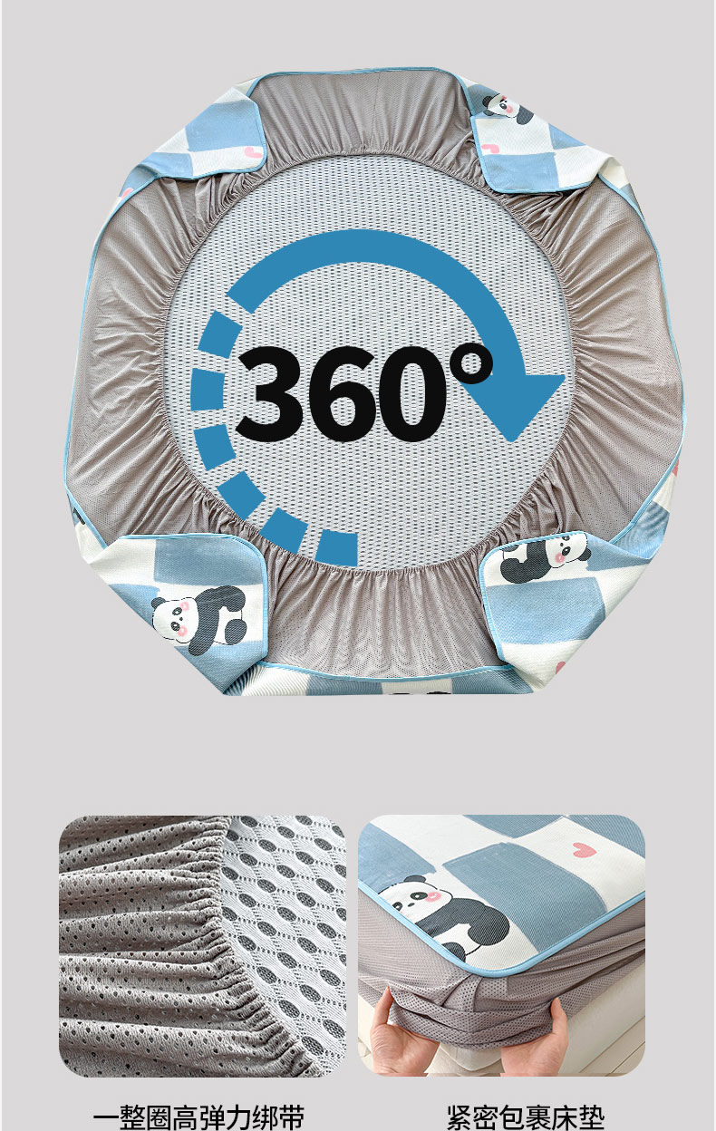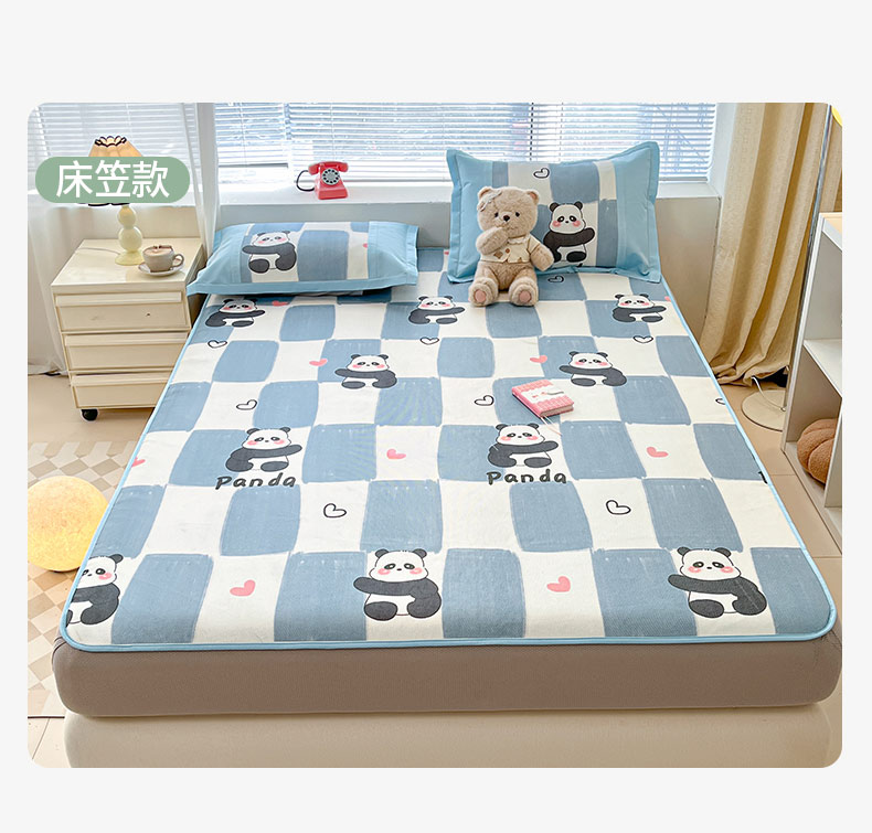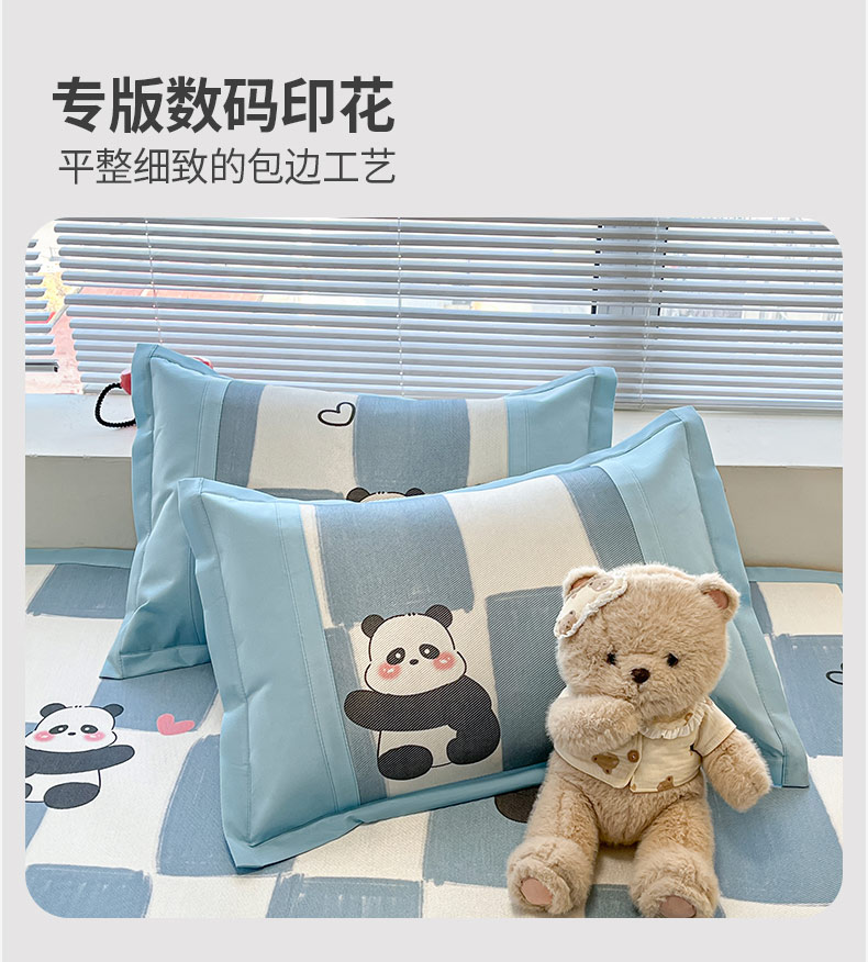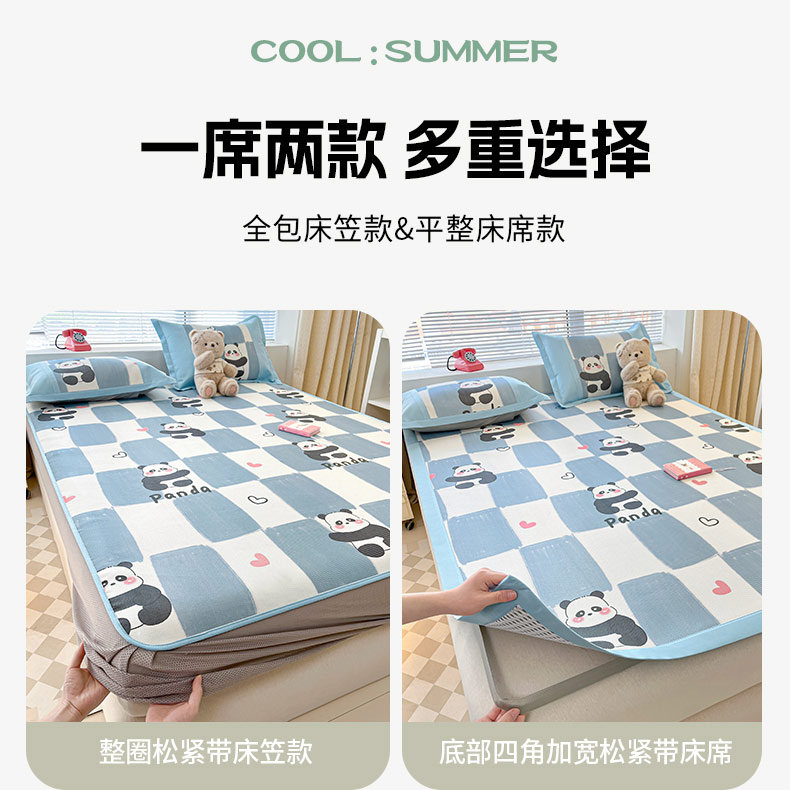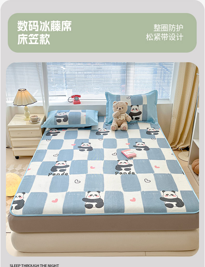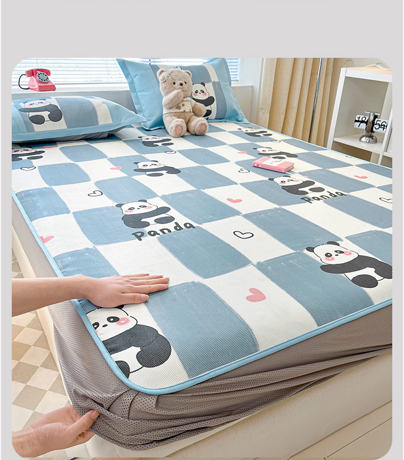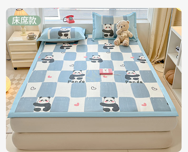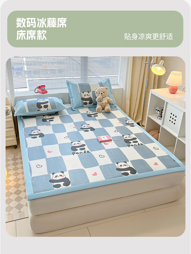 鑫琪莱家纺 2025新款数码印花加密冰藤凉席三件套 床笠款-棋趣熊猫