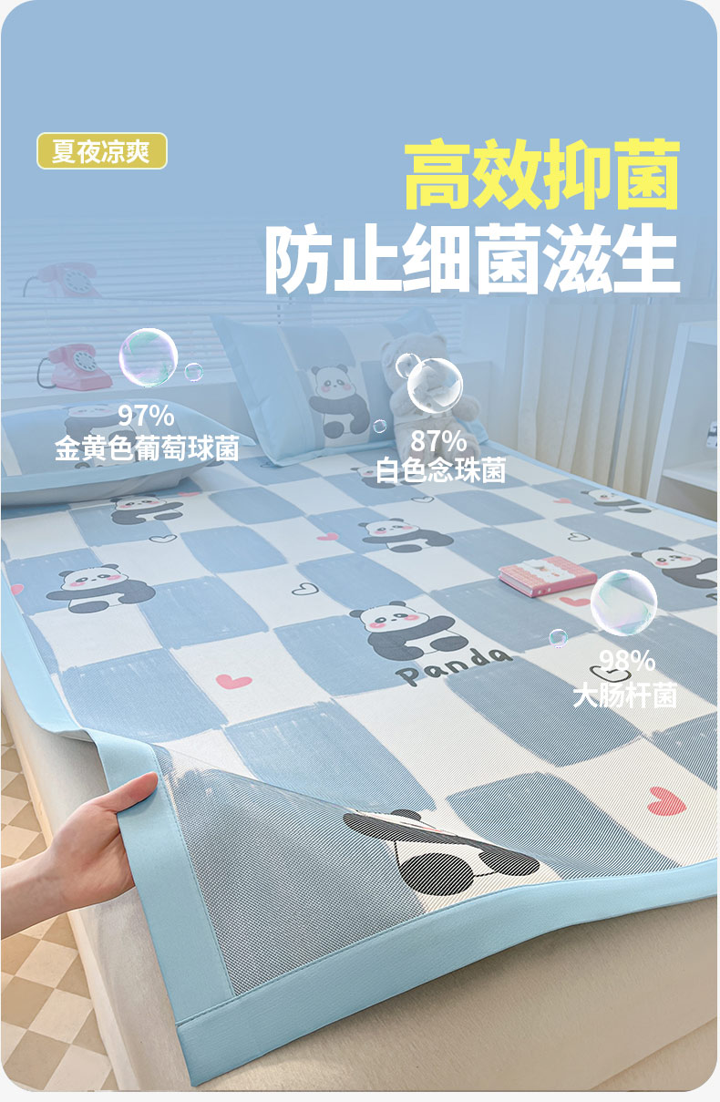 商品名称:鑫琪莱家纺 2025新款数码印花加密冰藤凉席三件套 床笠款-棋趣熊猫