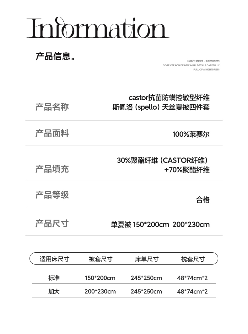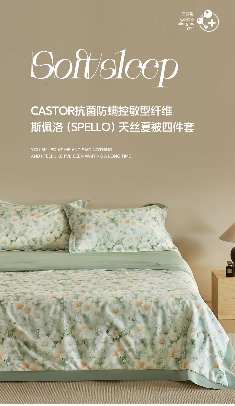商品名称:(总)巴宝路 2025新款斯佩洛(spello)安芯丝抗菌防螨低敏控敏天丝夏被四件套(配送包装)