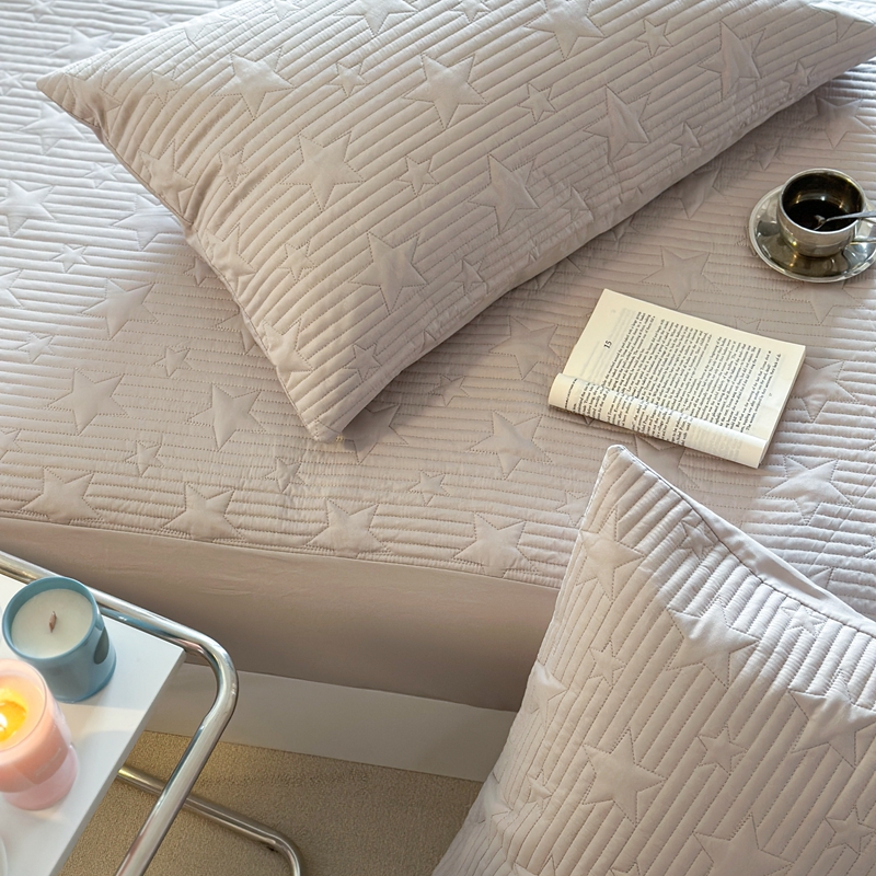 (总)漫调家纺 2025新款繁星绗缝夏被 复古风实拍,繁星白,繁星粉,繁星灰,繁星咖,繁星绿,繁星杏