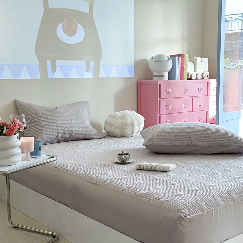 (总)漫调2025新款全棉星星床垫保护套夹棉床笠-繁星,组合图仅供参考,繁星白,繁星粉,繁星灰,繁星咖,繁星绿,繁星杏
