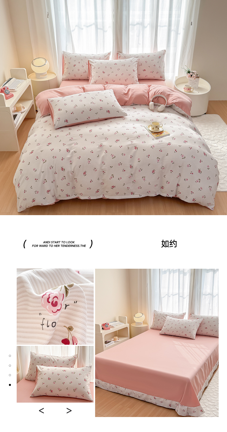 商品名称:铭浩家纺 2025新款A类针织棉双层纱四件套 如约