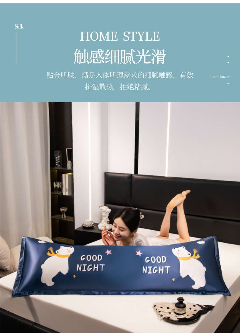 梦舒羽 2025新款可水洗冰丝双人枕套凉爽情侣枕头套枕芯套 北极熊