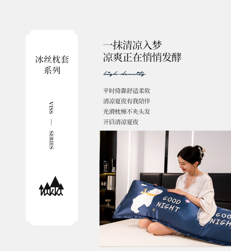 商品名称:梦舒羽 2025新款可水洗冰丝双人枕套凉爽情侣枕头套枕芯套 北极熊