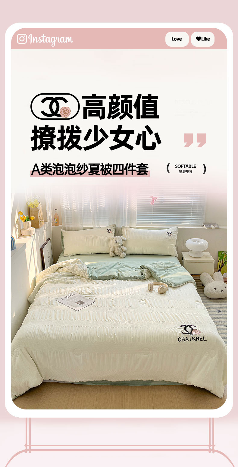 当前位置: 91家纺网 > 商品网购 > 床品套件 > 四件套 > 夏被四件套 > 灰鲸 2025新款泡泡纱艾丽莎刺绣夏被四件套系列 泡泡纱艾丽莎-奶昔白+抹茶绿