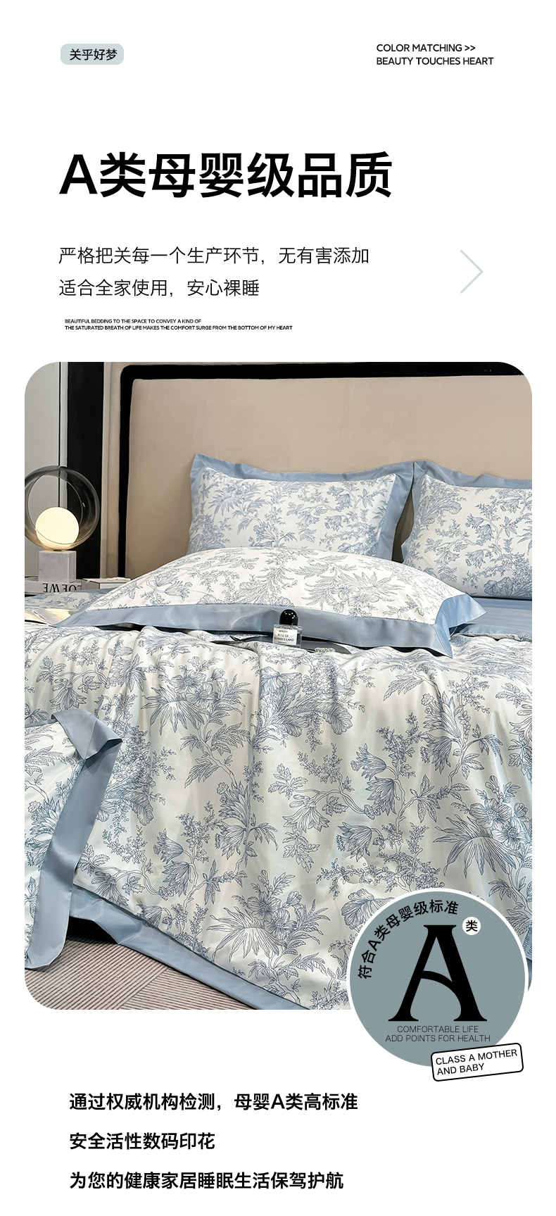 笙意家纺 2025新款水洗冰丝数码印花拼角宽边夏被 初语