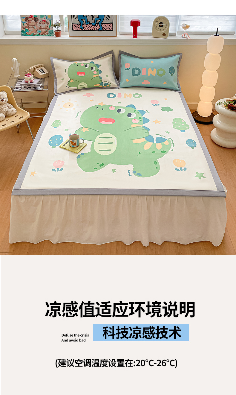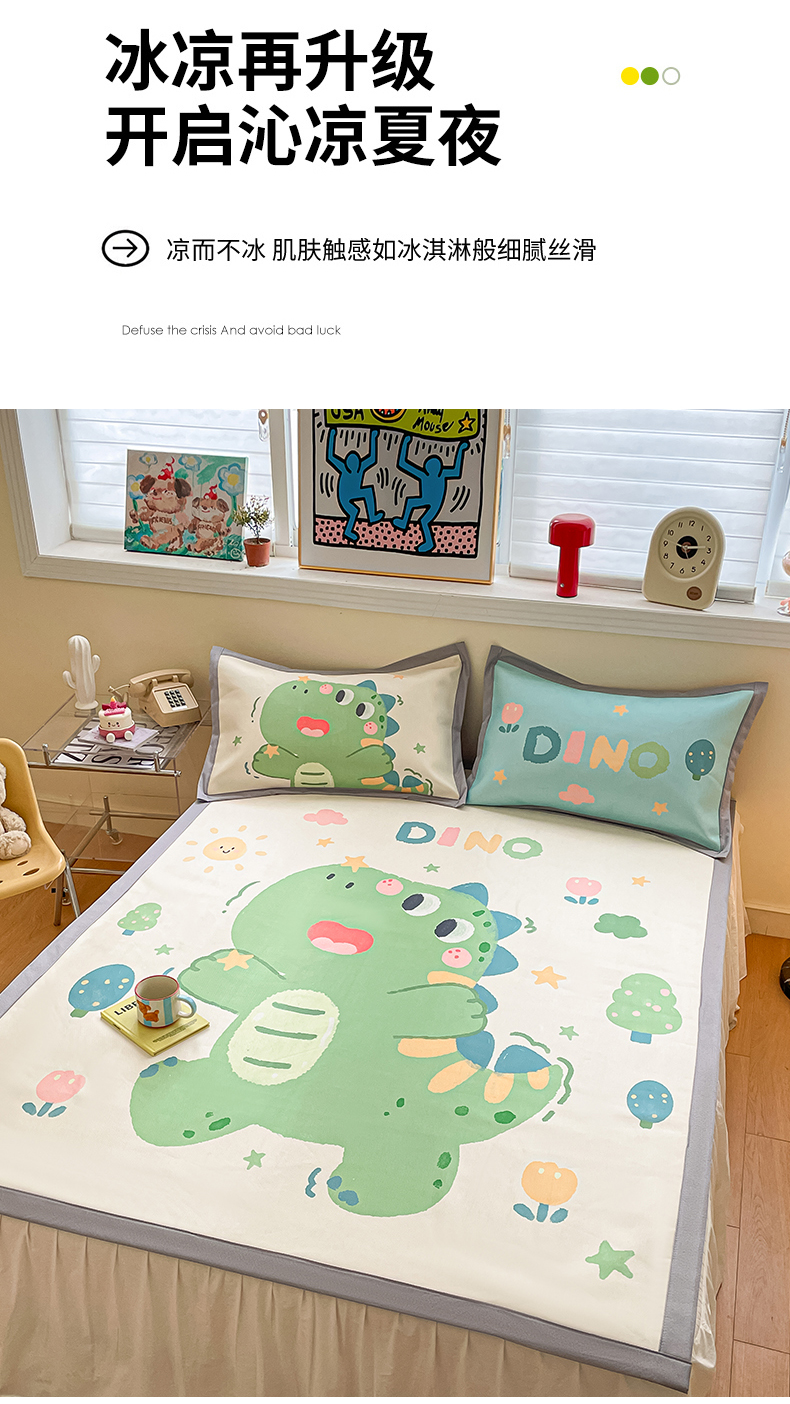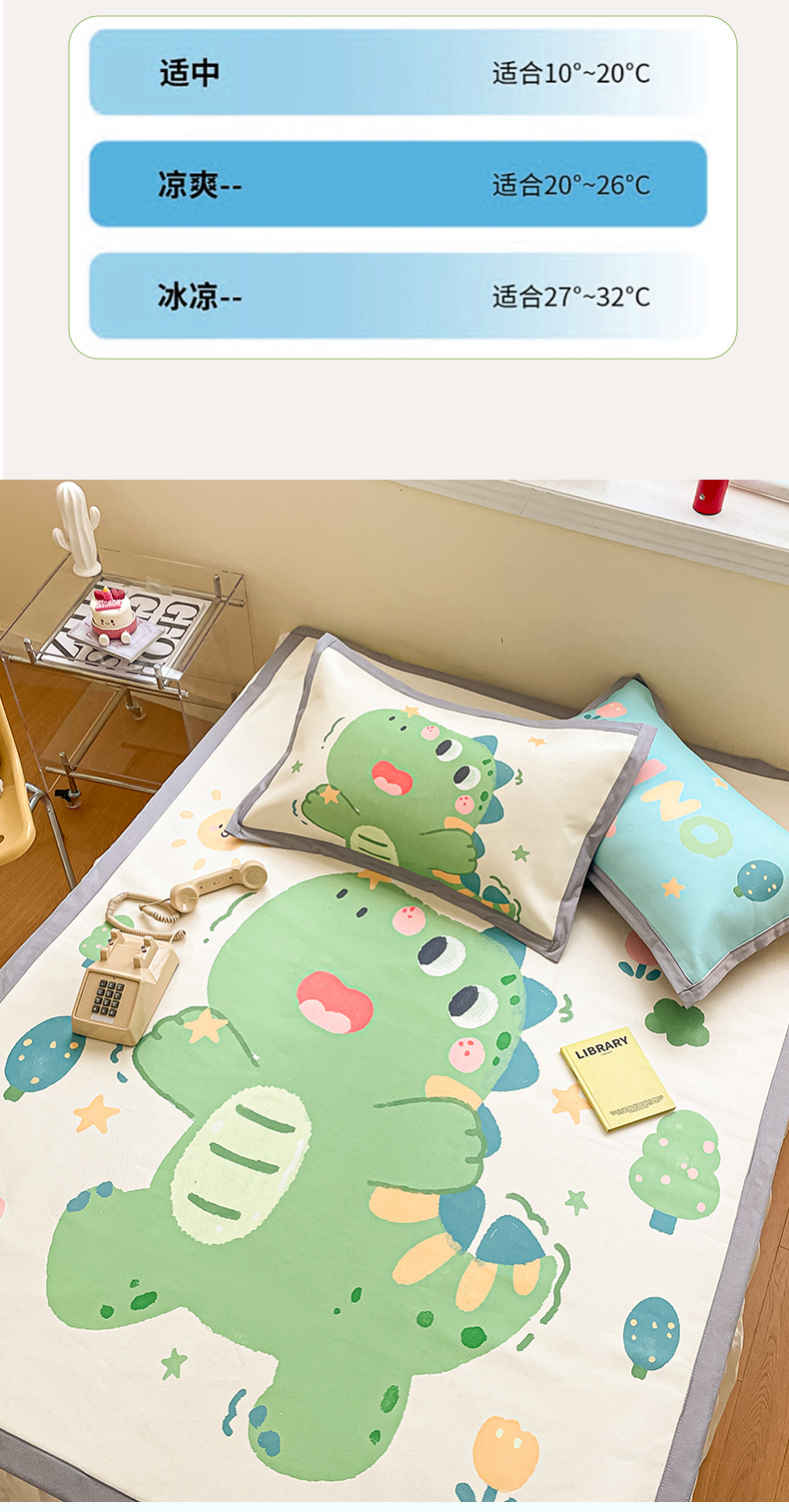 商品名称:川悦生活 2025新款大版凉感冰丝席三件套 山野小恐龙