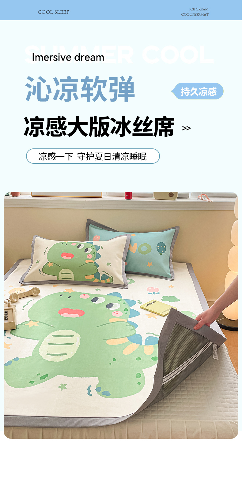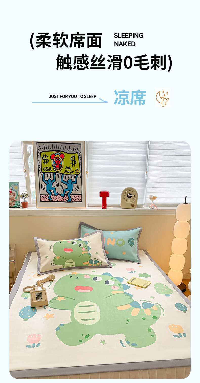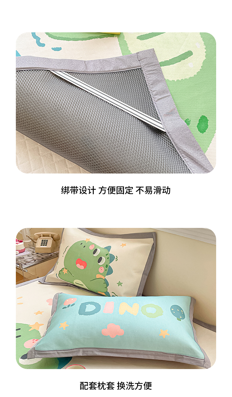 商品名称:川悦生活 2025新款大版凉感冰丝席三件套 山野小恐龙