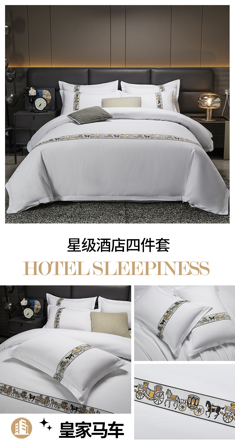 (总)小老弟 2025新款酒店用品酒店布草全棉纯棉60S酒店四件套,白色