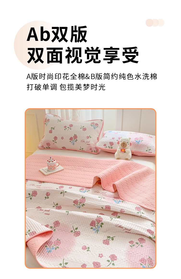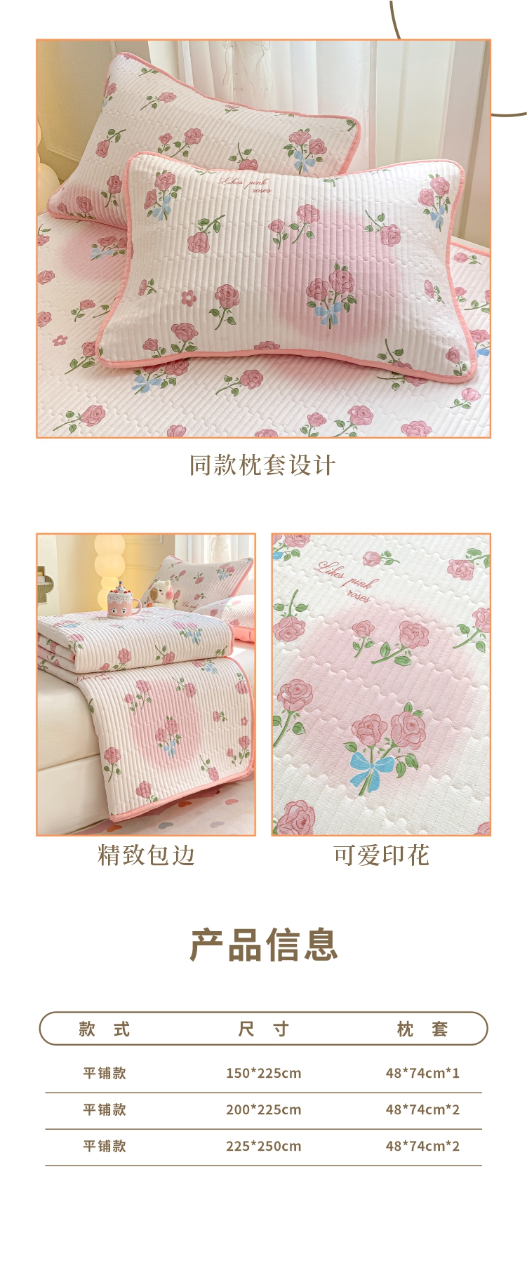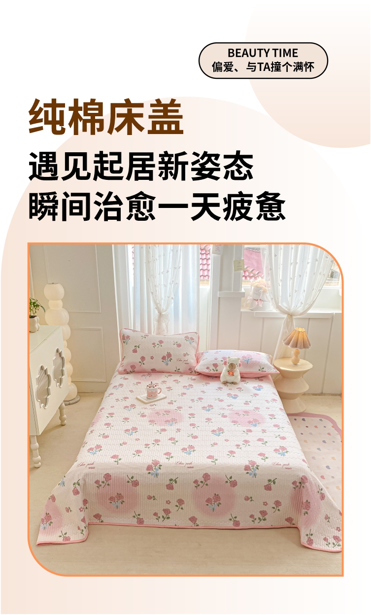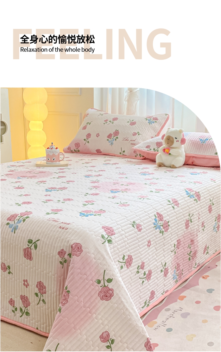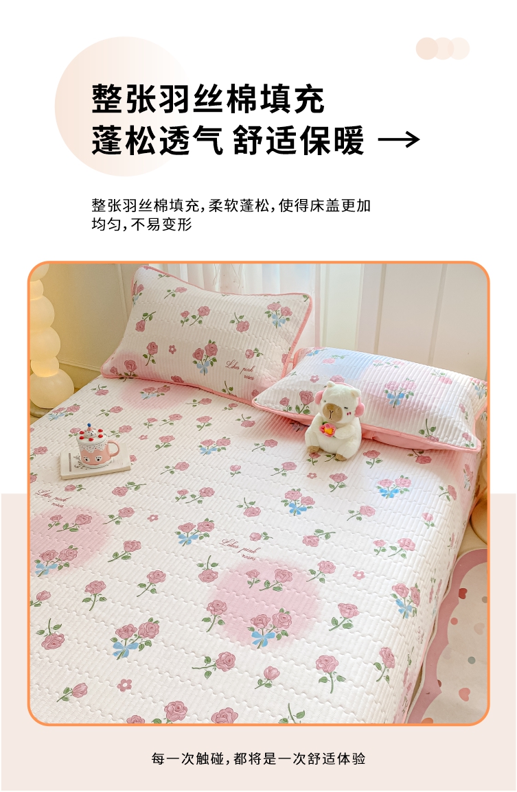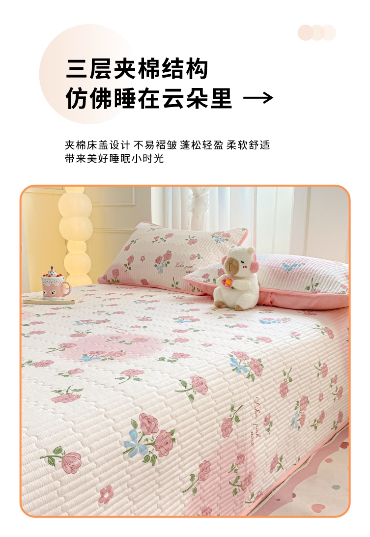 顺顺家纺 2025新款全棉卡通夹棉床盖 浪漫小花