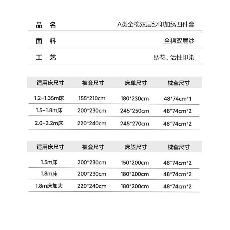 1.8m床笠款被套加大四件套 | ¥155.00 |