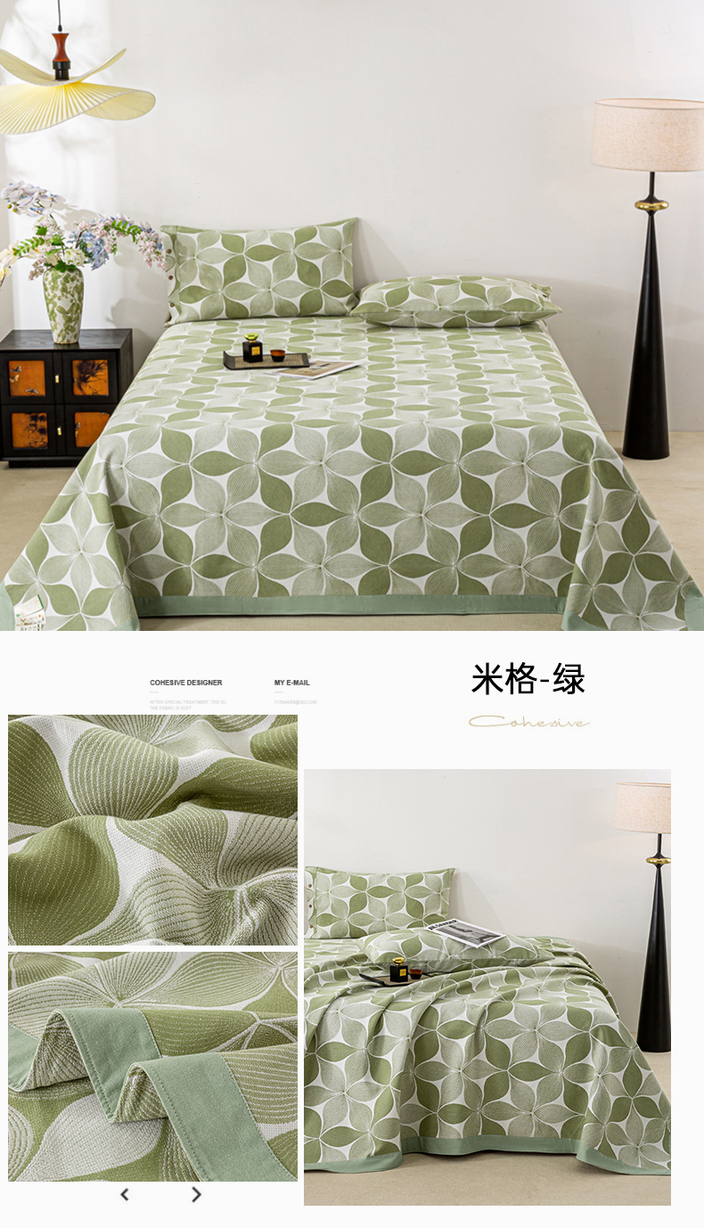 商品名称:玉相逢2025新款全棉色织老粗布凉席 米格-绿