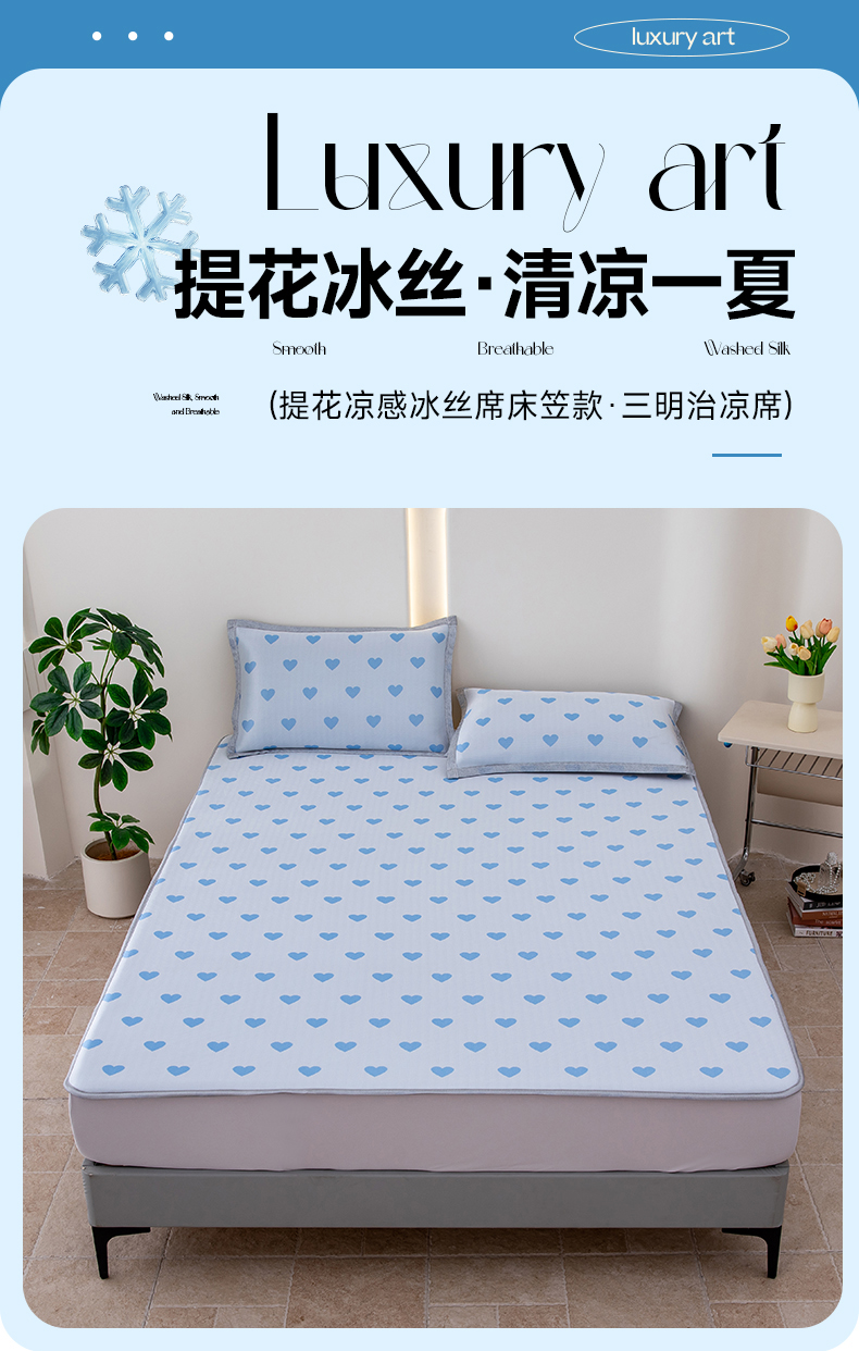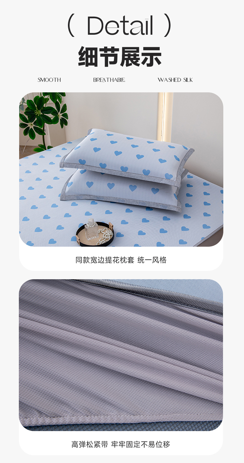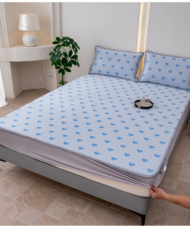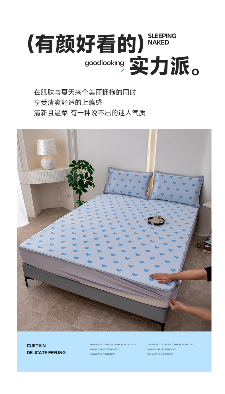 (总)凌云家纺 2025新款提花凉感冰丝席床笠款三明治凉席三件套,菱格-灰,菱格-蓝,甜心-粉,甜心-蓝,心海-蓝,雪漾-灰,雪漾-蓝
