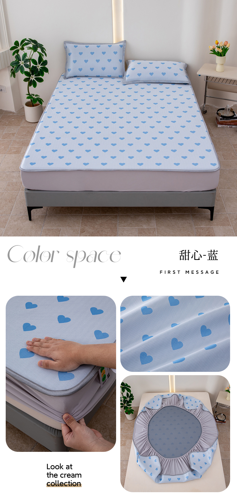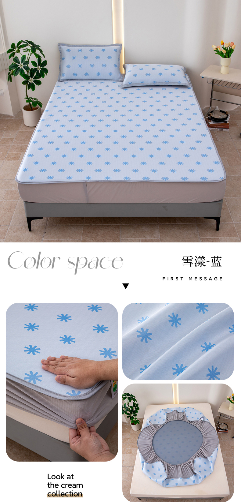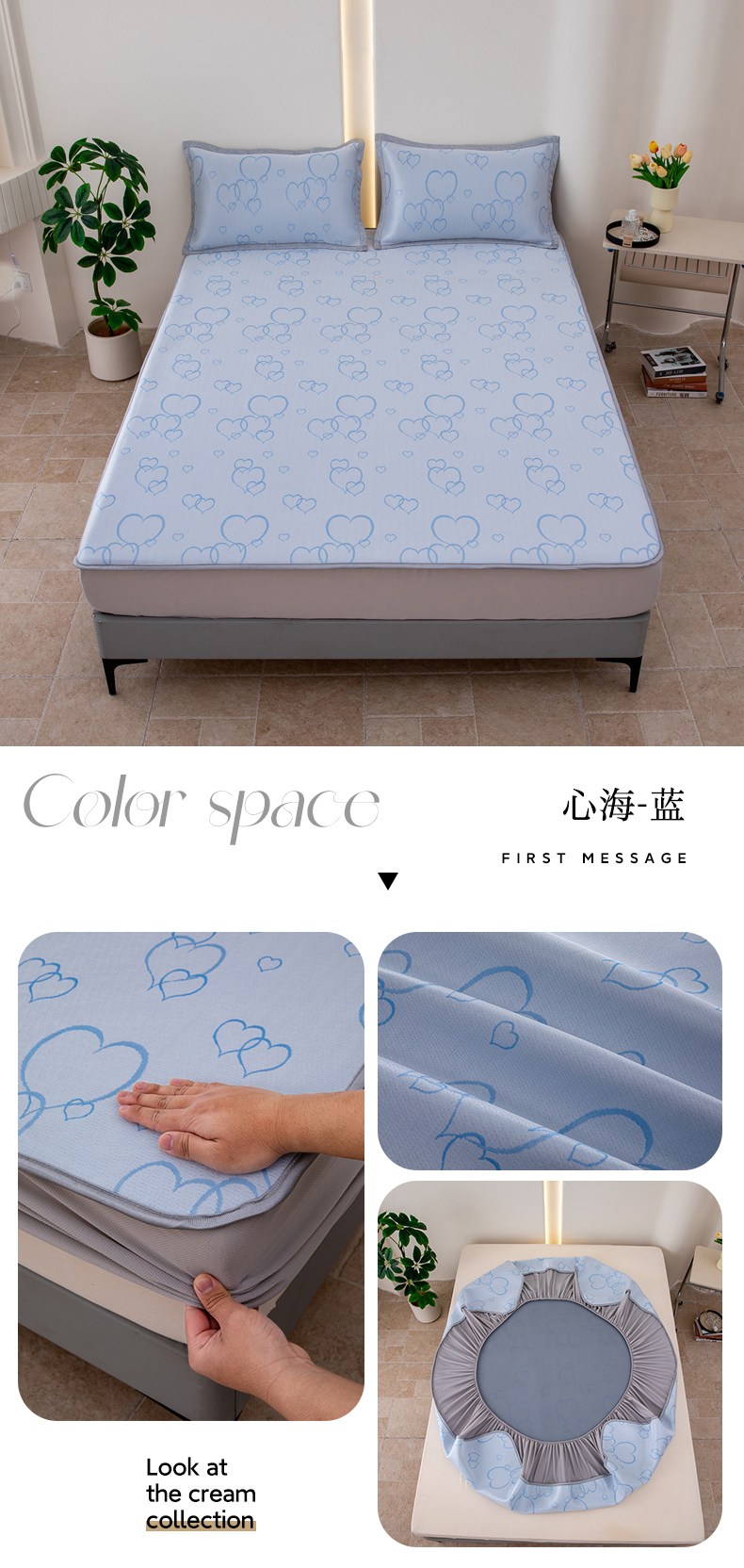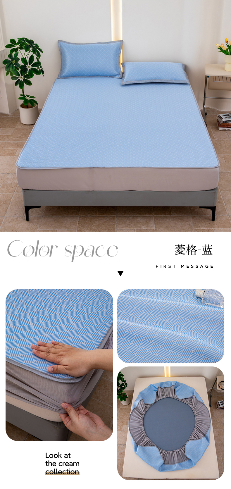 (总)凌云家纺 2025新款提花凉感冰丝席床笠款三明治凉席三件套,菱格-灰,菱格-蓝,甜心-粉,甜心-蓝,心海-蓝,雪漾-灰,雪漾-蓝