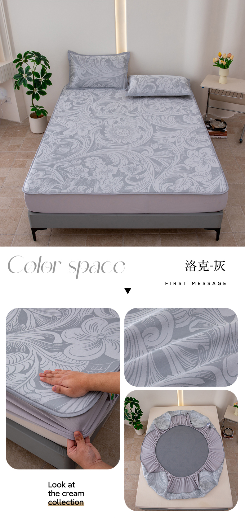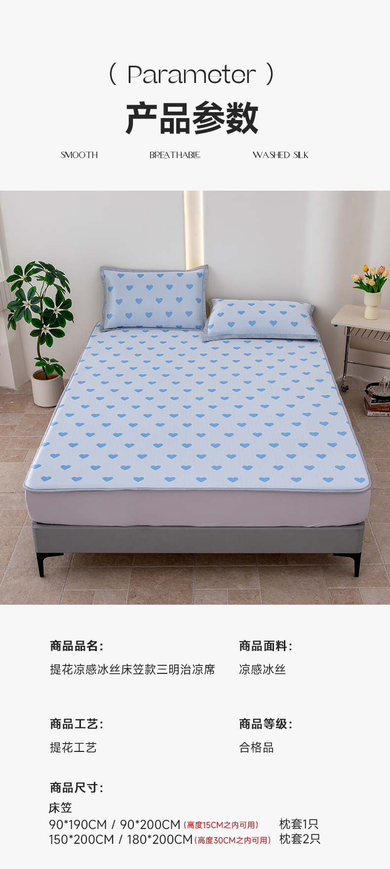 商品名称:(总)凌云家纺 2025新款提花凉感冰丝席床笠款三明治凉席三件套