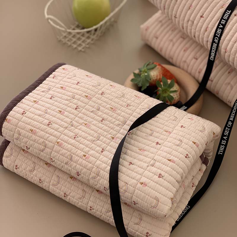(总)汇庭 2025新款秋冬胖胖樱桃春秋被+樱桃菲菲床盖三件套,组合图下单仅供展示不可下单,粉色,绿色,米色