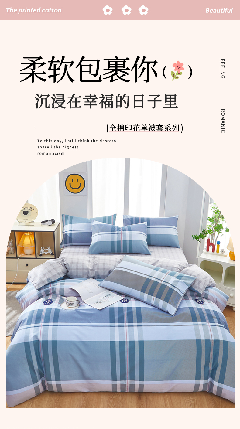 • 91家纺网 家纺一手货源 找家纺 黛妮雅 2025新款AB版全棉印花单被套床单枕套 自由品格