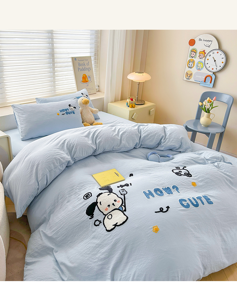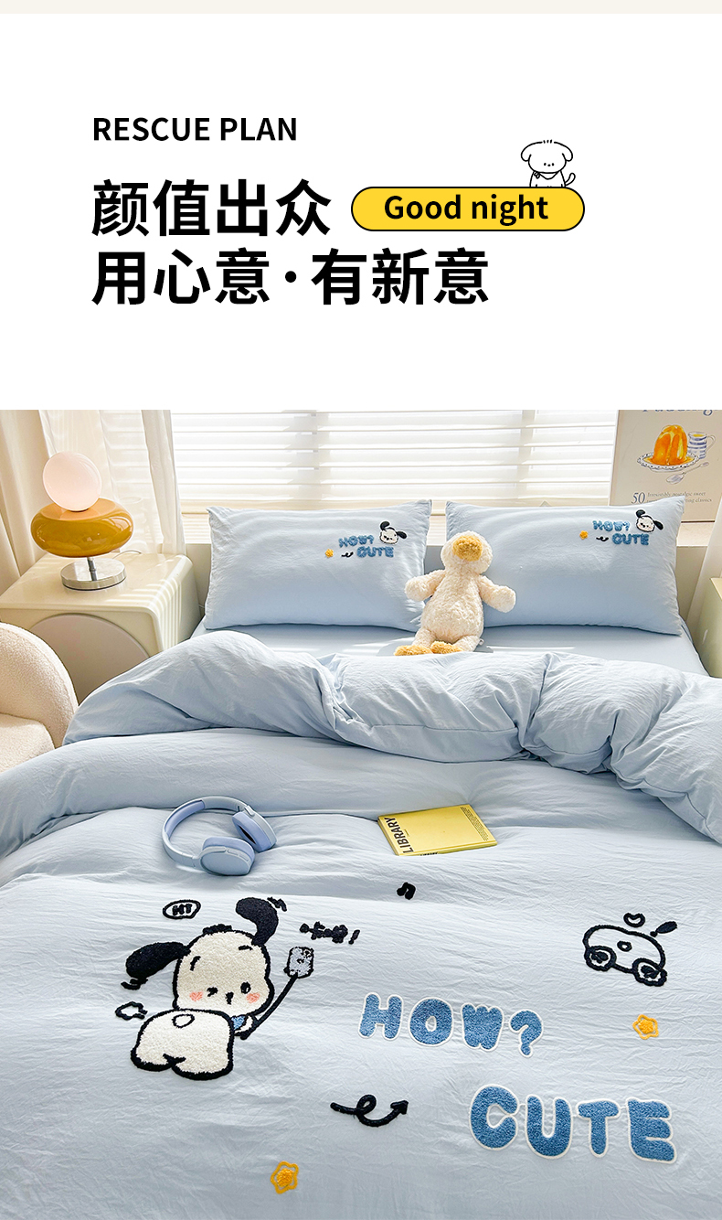 包小包 2025新款糯糯绵毛巾绣可爱卡通爆款四件套 顽皮狗-雾蓝