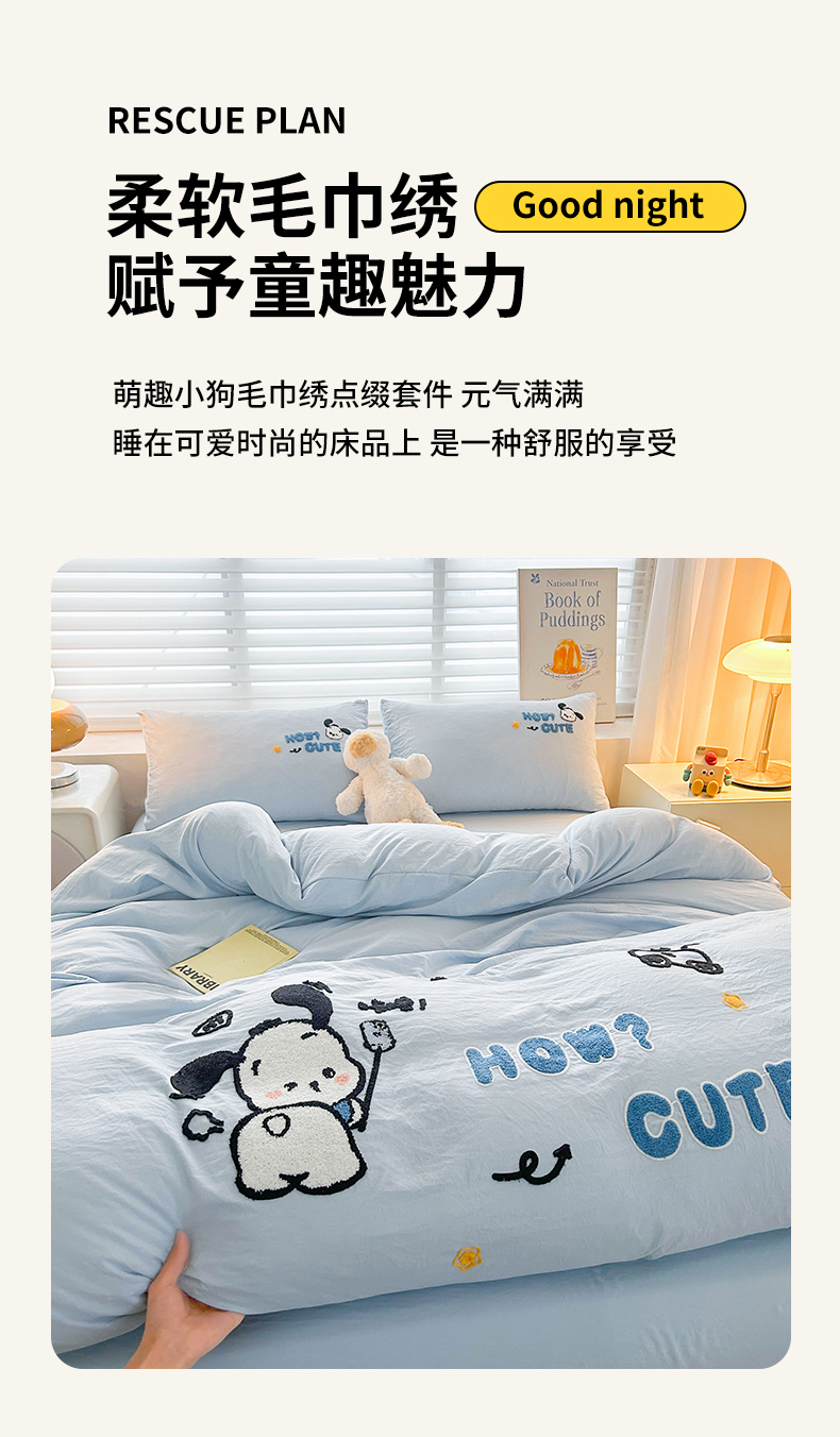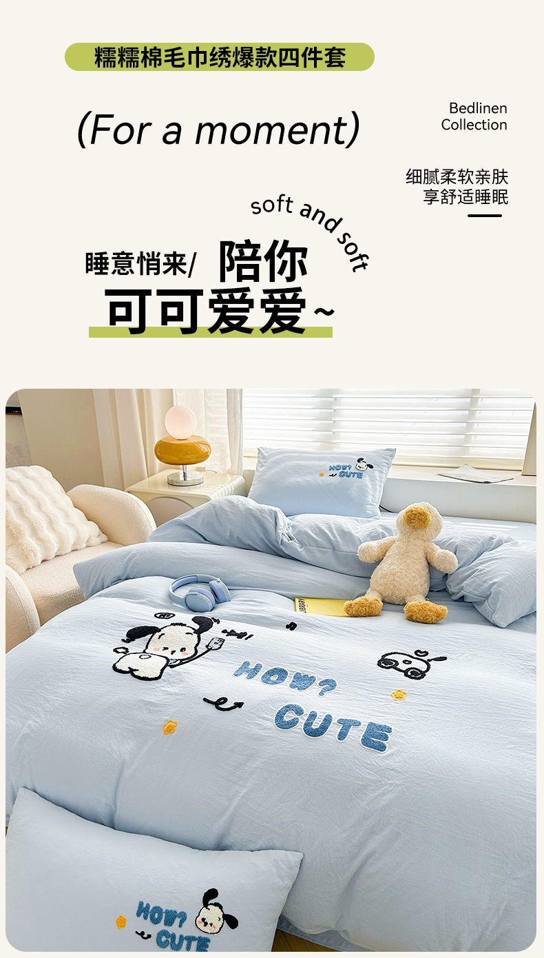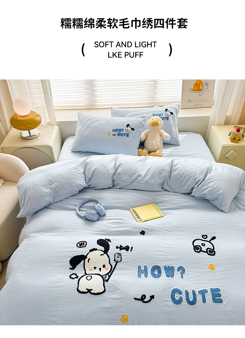 (总)包小包 2025新款糯糯绵毛巾绣可爱卡通爆款四件套,顽皮狗-白绿,好朋友-奶咖,猫小桃-蓝,奶油兔-粉,顽皮狗-粉,顽皮狗-灰,顽皮狗-奶咖,顽皮狗-雾蓝,小熊猫-绿