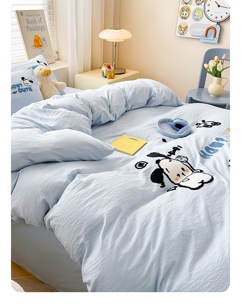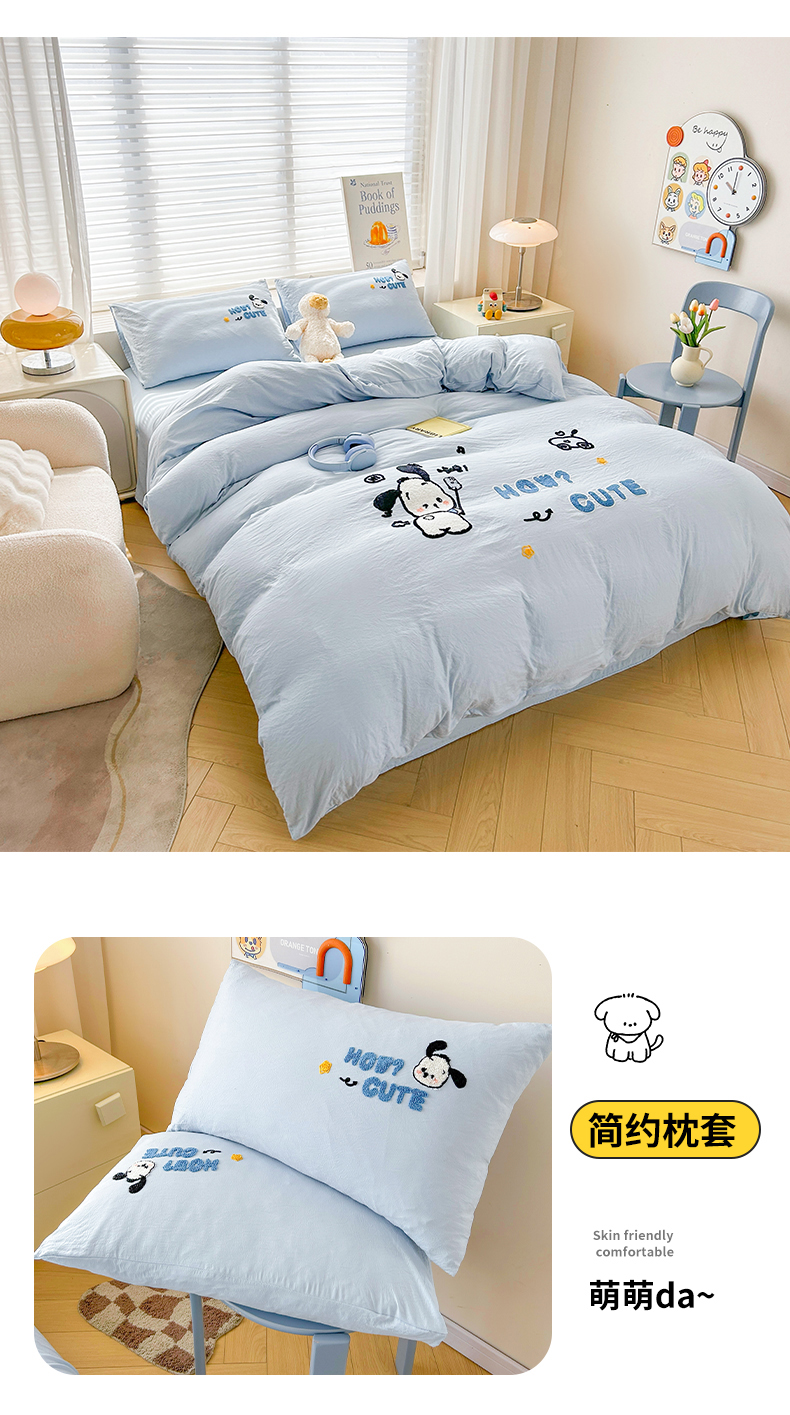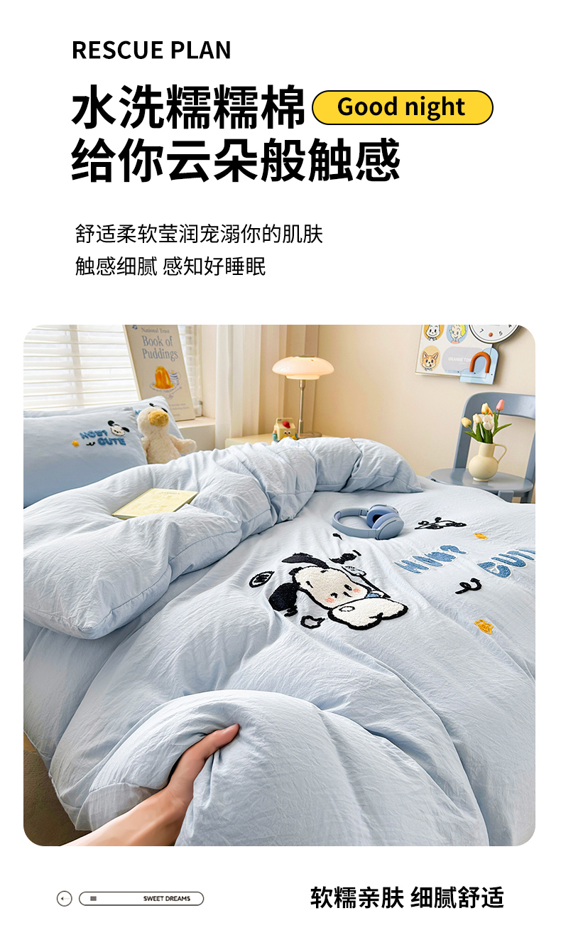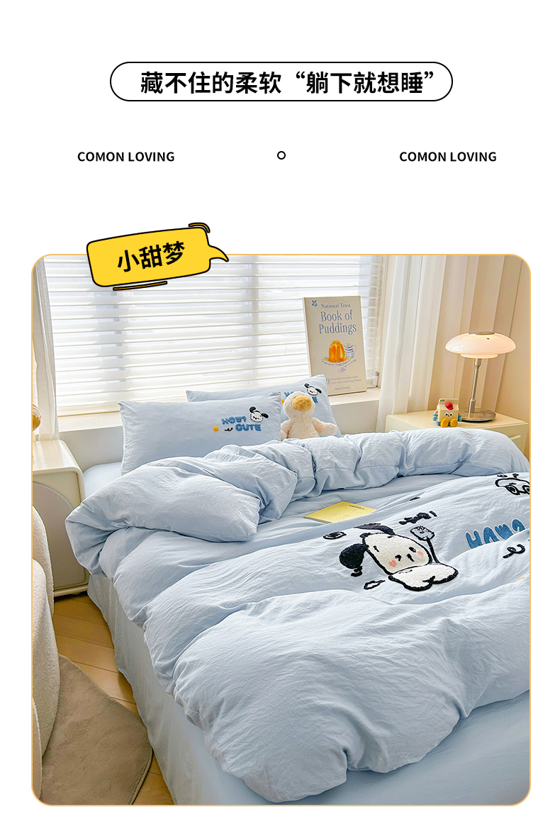 商品名称:包小包 2025新款糯糯绵毛巾绣可爱卡通爆款四件套 顽皮狗-雾蓝