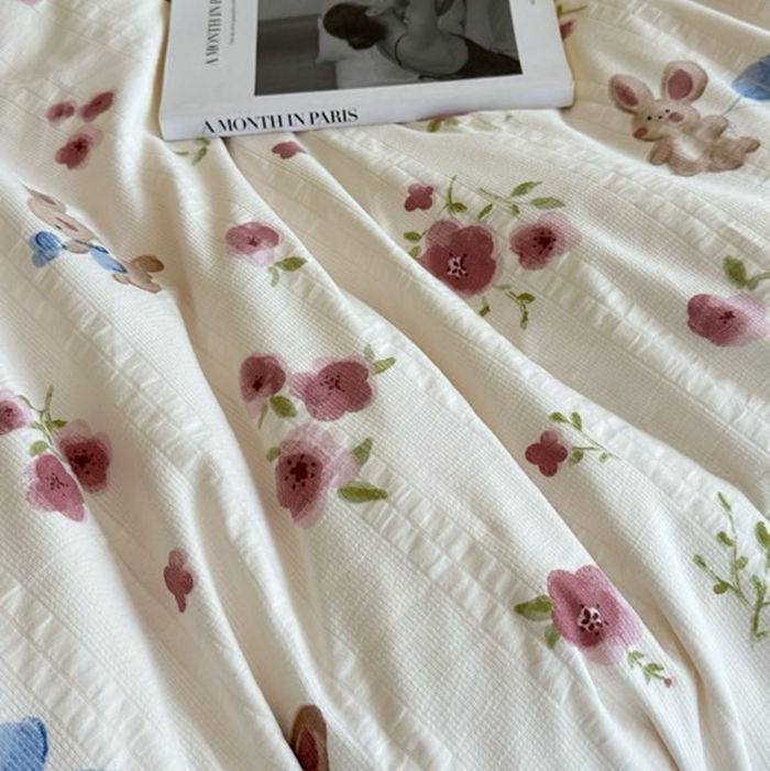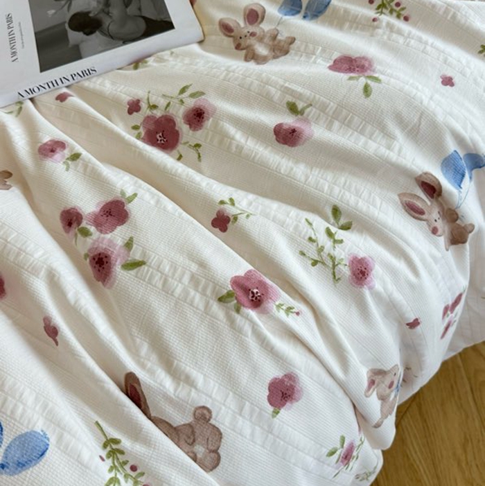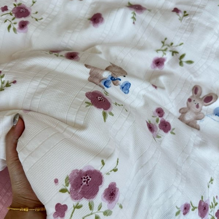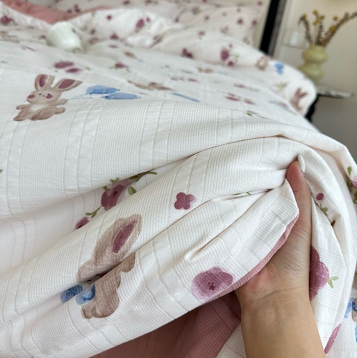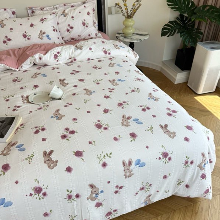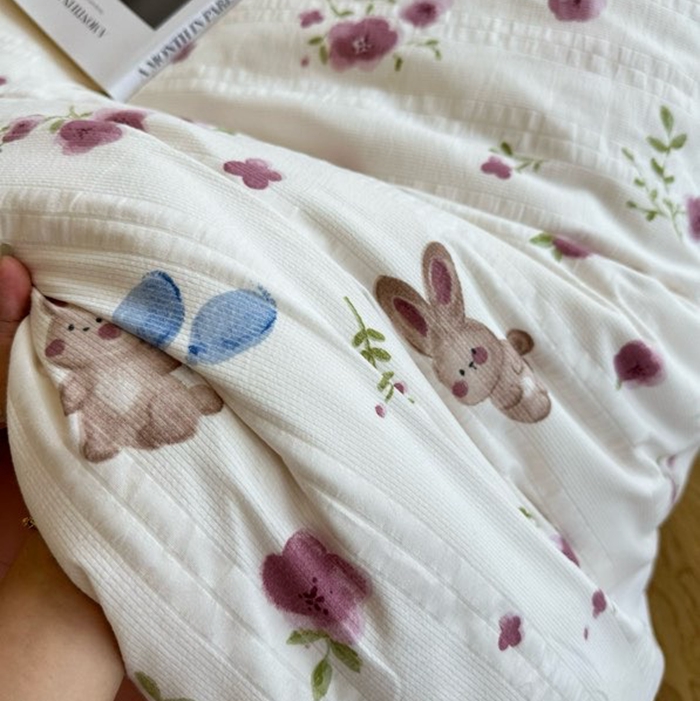 美丽坊 2025新款竹纱棉四件套 花岛寻兔