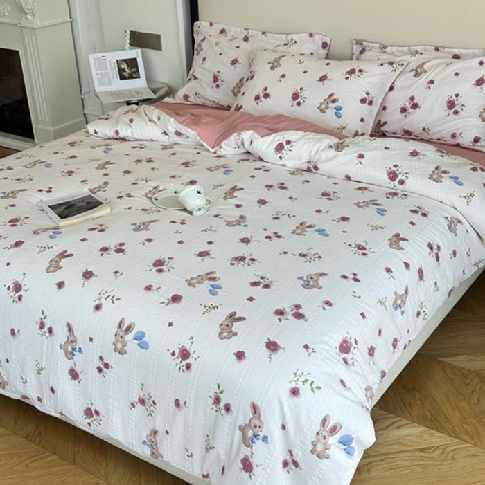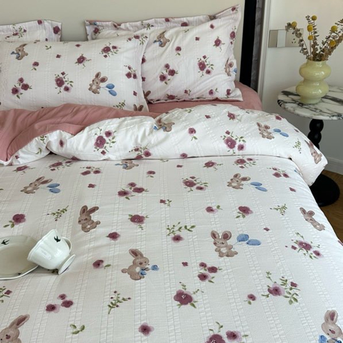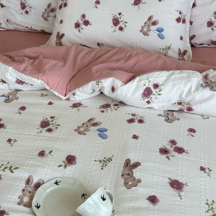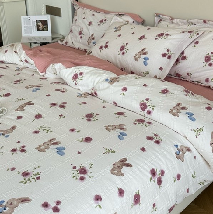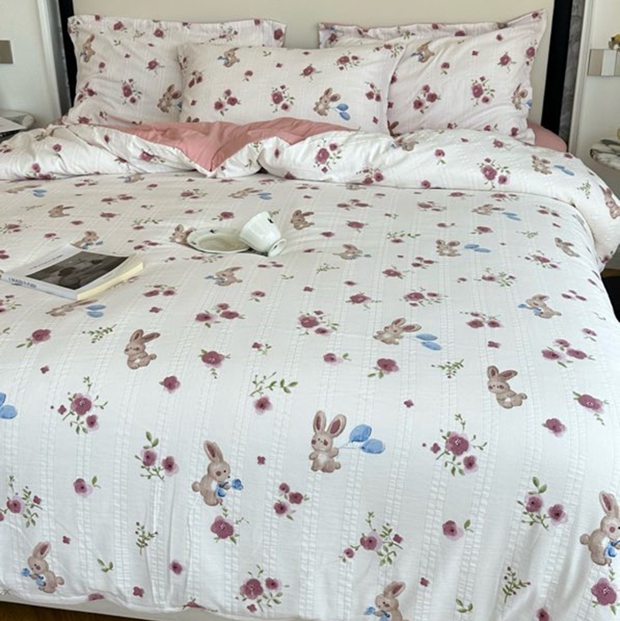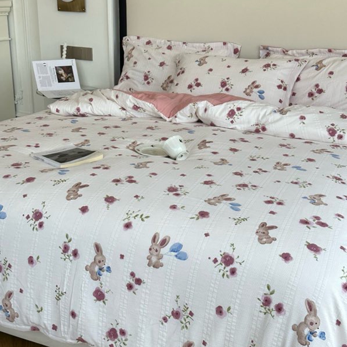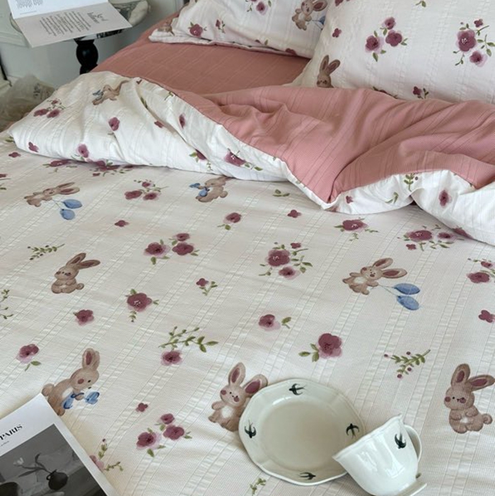 美丽坊 2025新款竹纱棉四件套 花岛寻兔