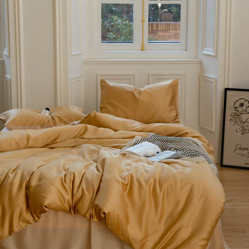 当前位置: 91家纺网 > 商品网购 > 床品套件 > 四件套 > 莱赛尔四件套 > 未来家居 2025新款60S兰精天丝纯色四件套 芝士黄-沙茶色