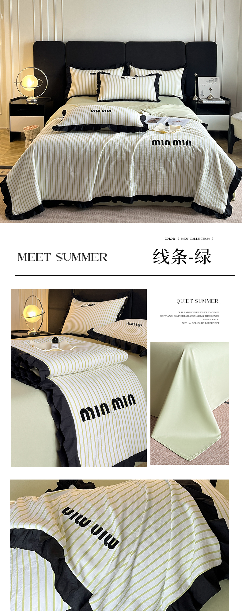 苏源家居 2025新款亲肤棉刺绣夏被四件套-线条系列 线条-绿