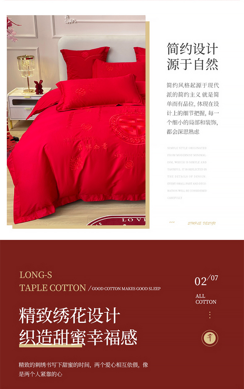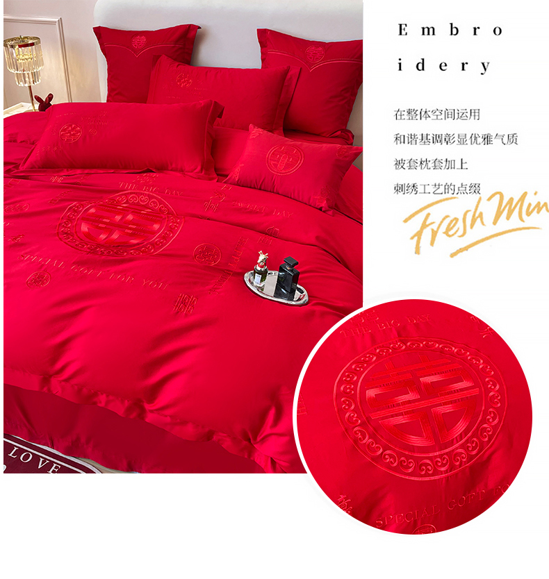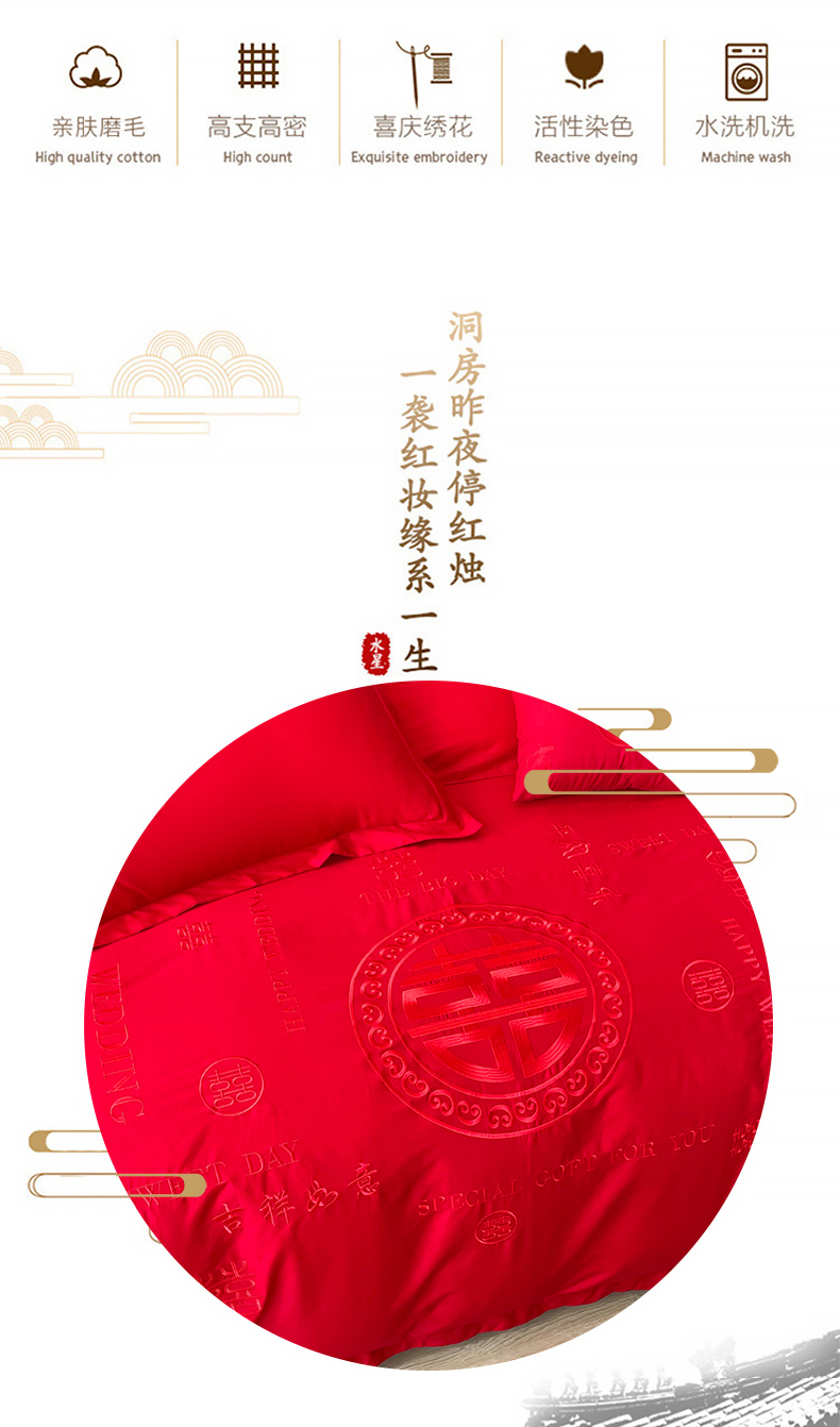 当前位置: 91家纺网 > 商品网购 > 床品套件 > 四件套 > 婚庆四件套 > 富之雅婚庆 2025新款亲肤棉磨毛刺绣婚庆四件套多件套 良辰喜事(本色线)磨毛款