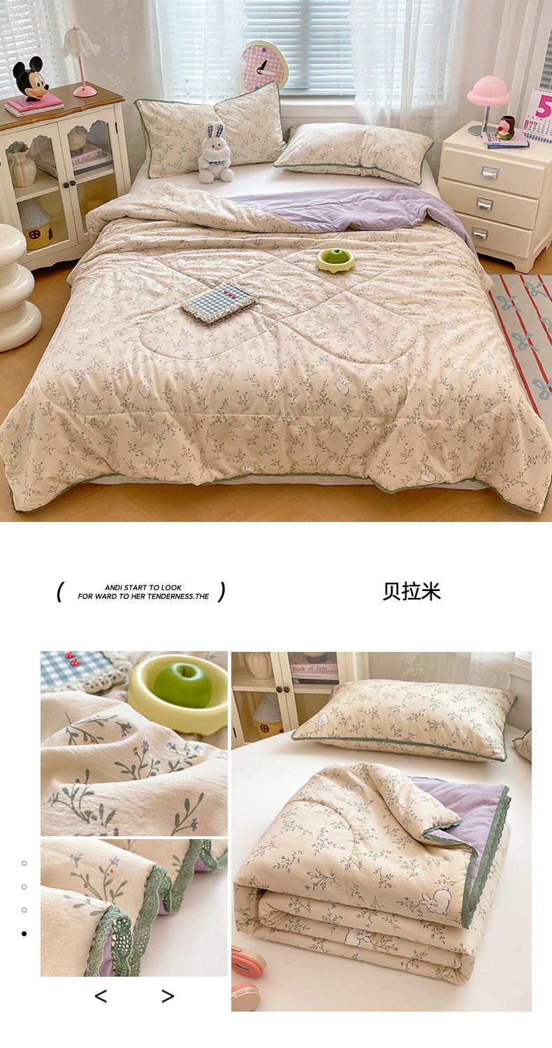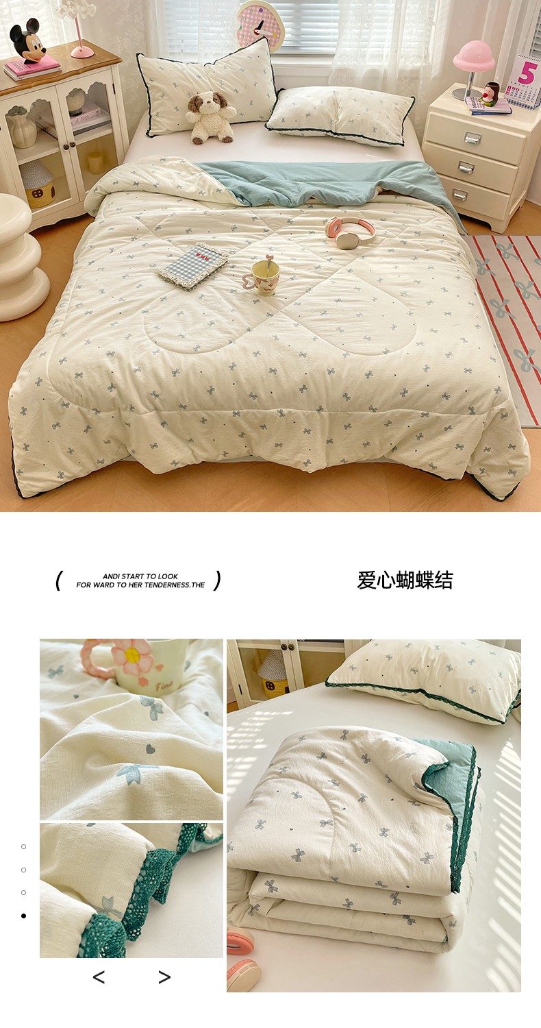 商品名称:(总)优承佳生活馆 2025新款云感双层纱浪漫小花边抗菌夏被子被芯