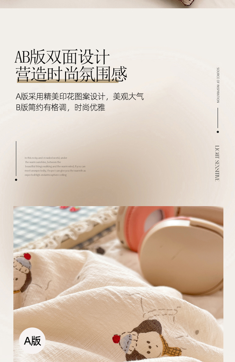 (总)优承佳生活馆 2025新款有氧超柔云感双层纱三件套四件套单被套 场景一,彩色波点,草莓甜筒,查弥,春日,花影枝,花枝摇曳,萌宝派对,梦幻萌宠,千千结,巧克力豆,时尚风向,甜心莓,心动汪崽,熊熊乐园,熊熊手账,樱桃结