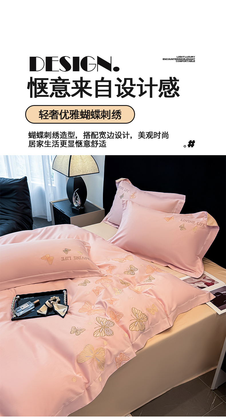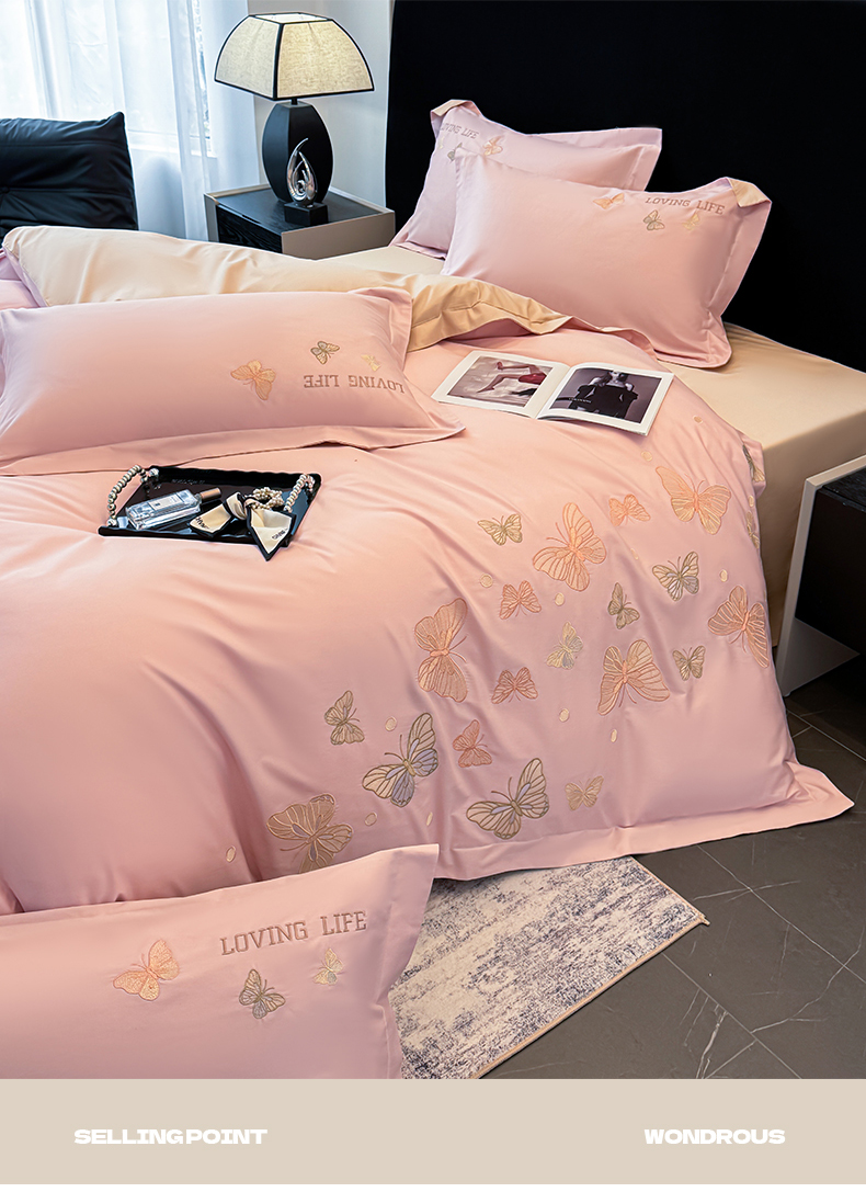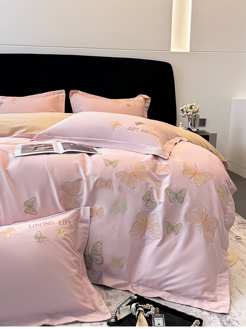 典曼家纺 2025新款 A类高精密40支13374喷气绣花四件套 【带礼盒】 蝴蝶花园-粉