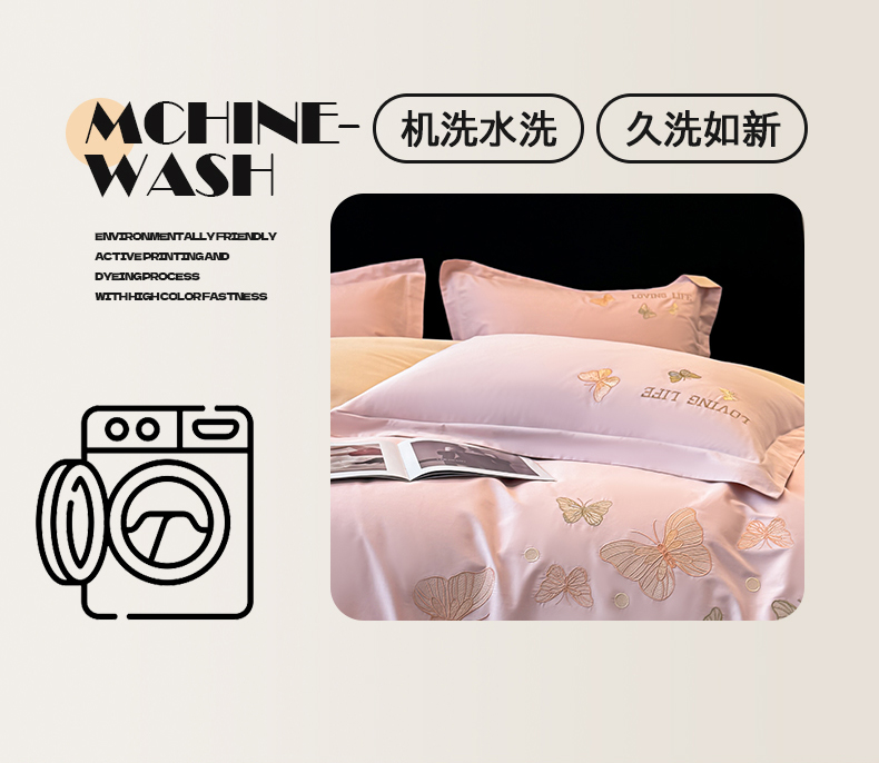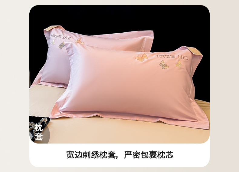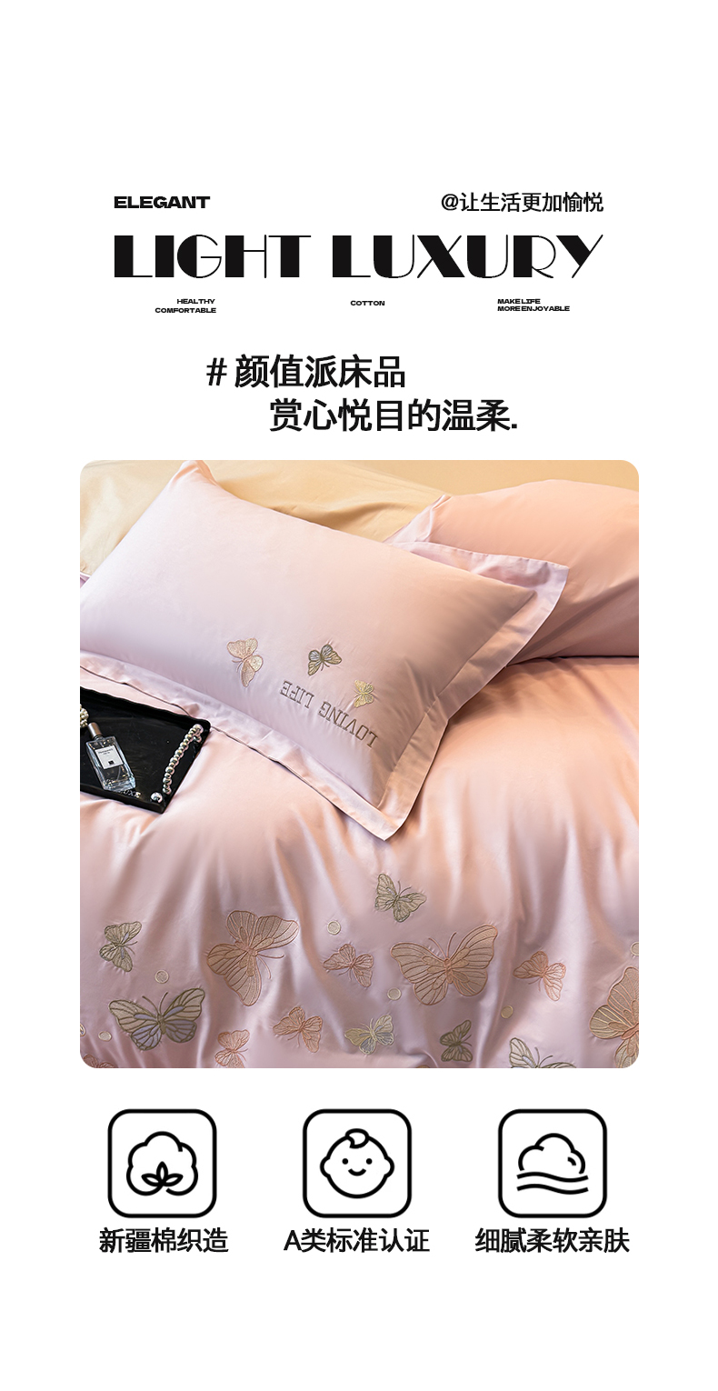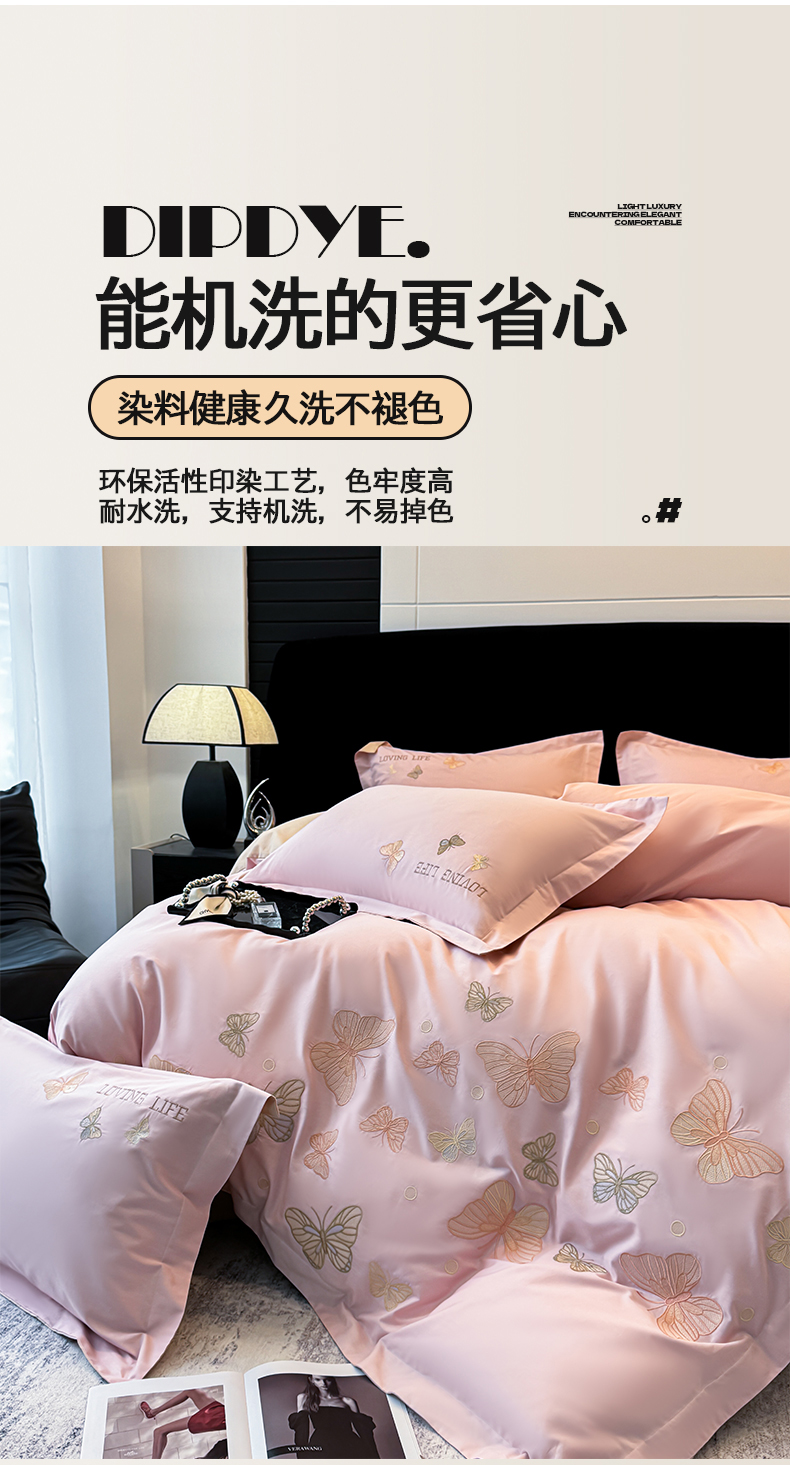 商品名称:典曼家纺 2025新款 A类高精密40支13374喷气绣花四件套 【带礼盒】 蝴蝶花园-粉