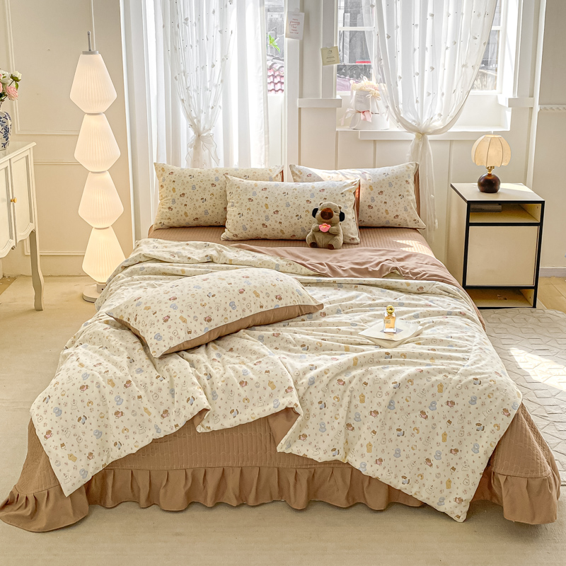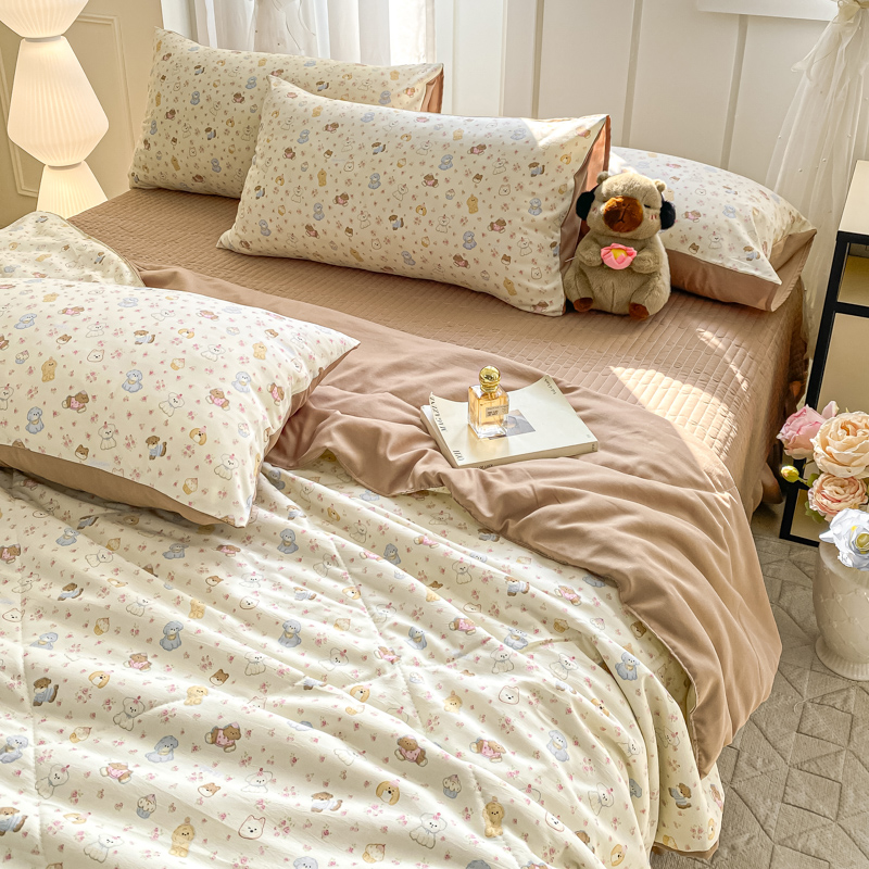 商品名称:一比一家纺 2025新款针织双层纱夏被床盖四件套单夏被单床盖单品 奶芙汪汪