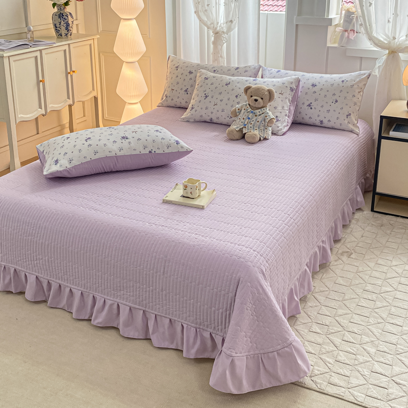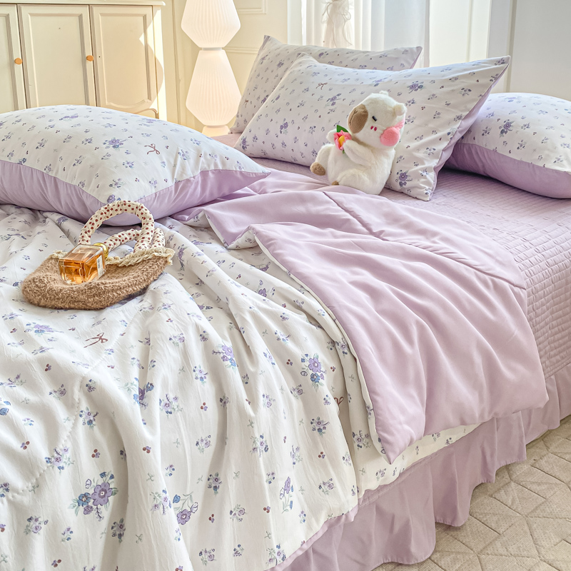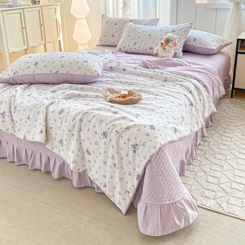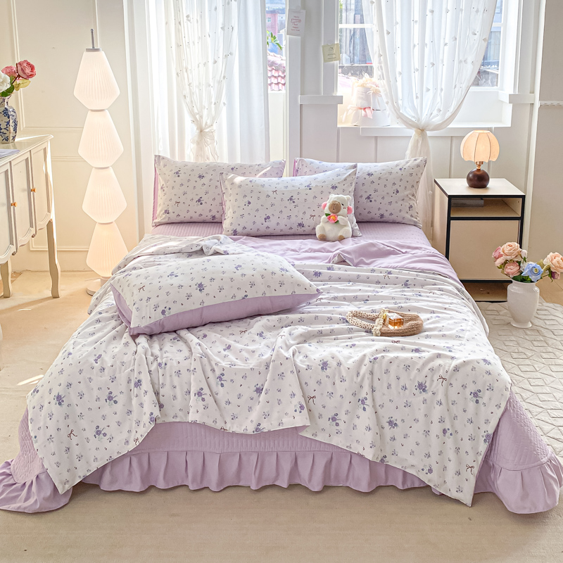 商品名称:一比一家纺 2025新款针织双层纱夏被床盖四件套单夏被单床盖单品 紫色香氛