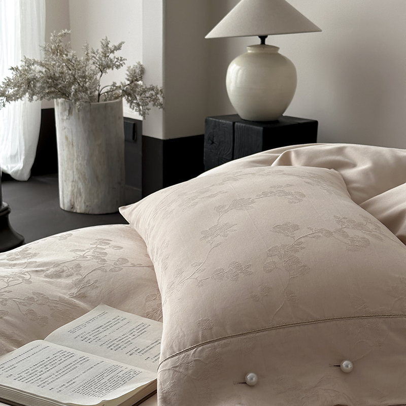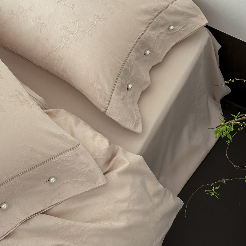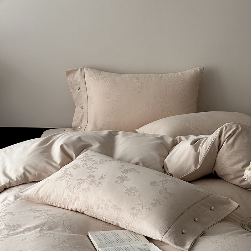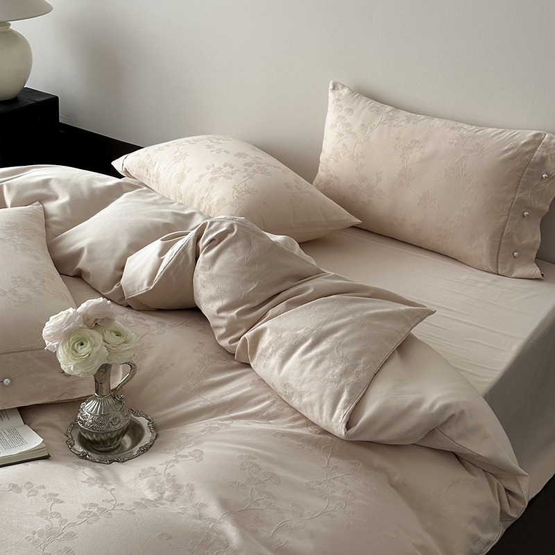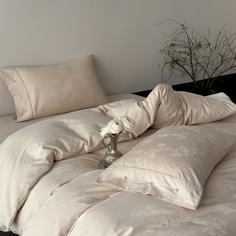 涞澳家纺 2025新款全棉水洗棉提花珍珠纽扣四件套 风吟浅夏-棕玉