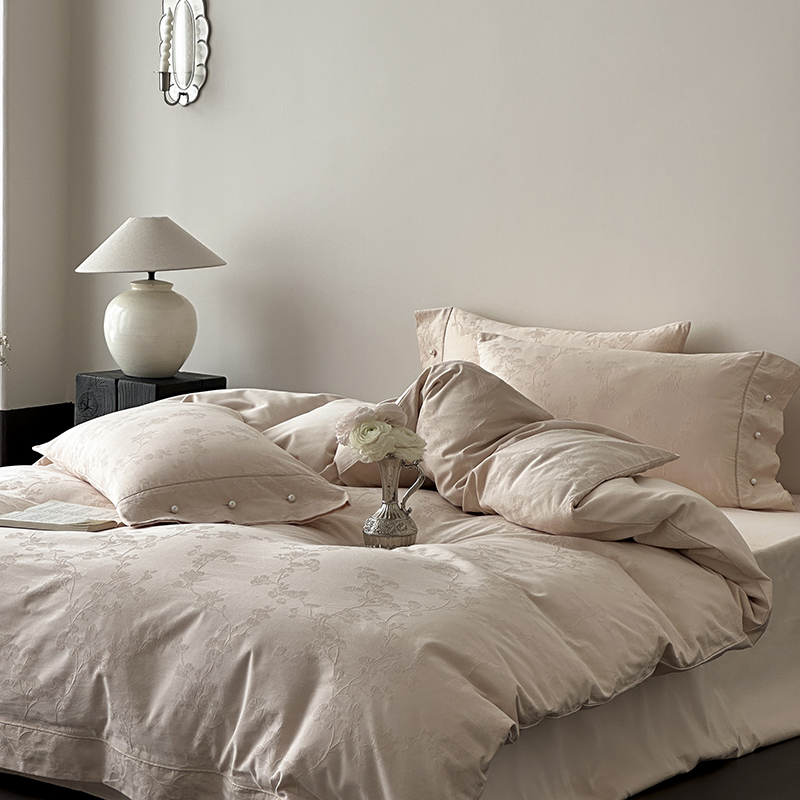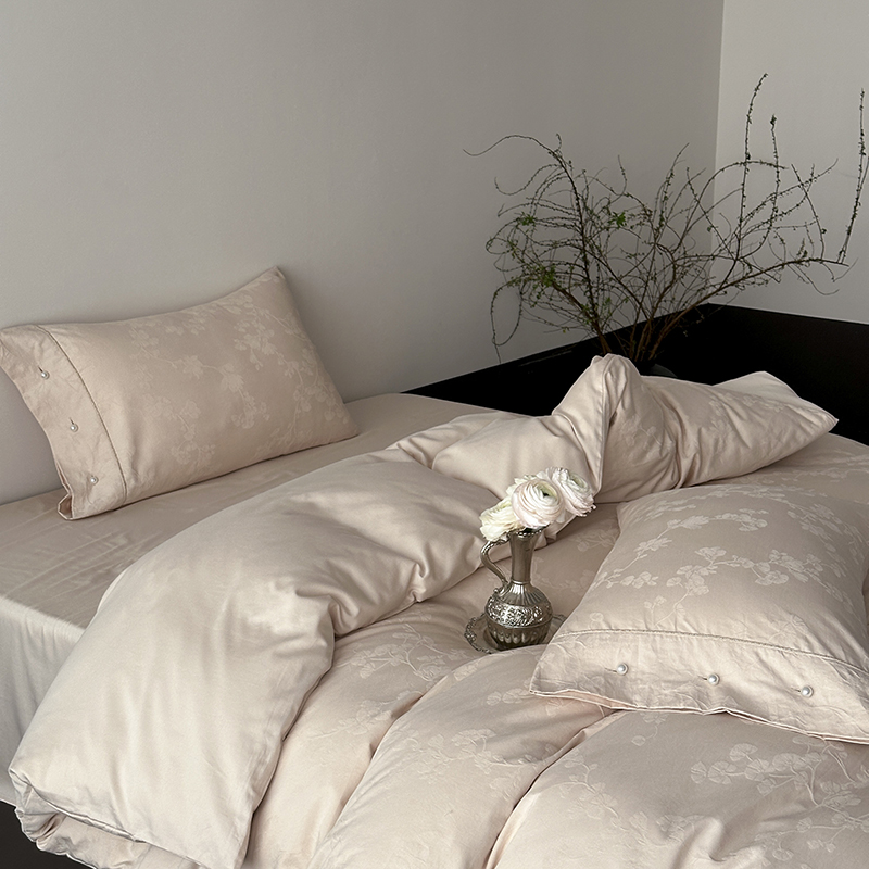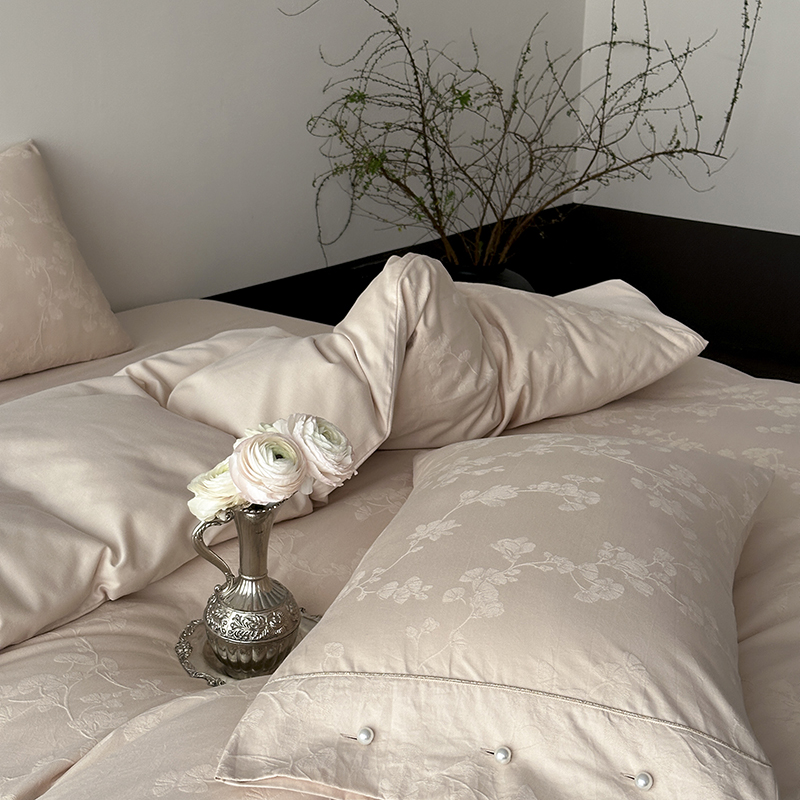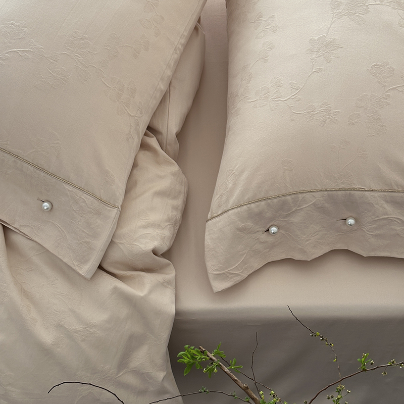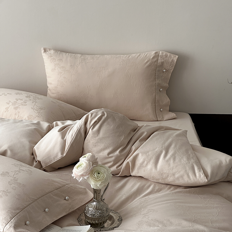 涞澳家纺 2025新款全棉水洗棉提花珍珠纽扣四件套 风吟浅夏-棕玉