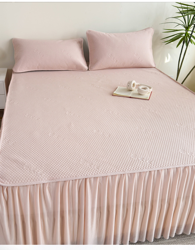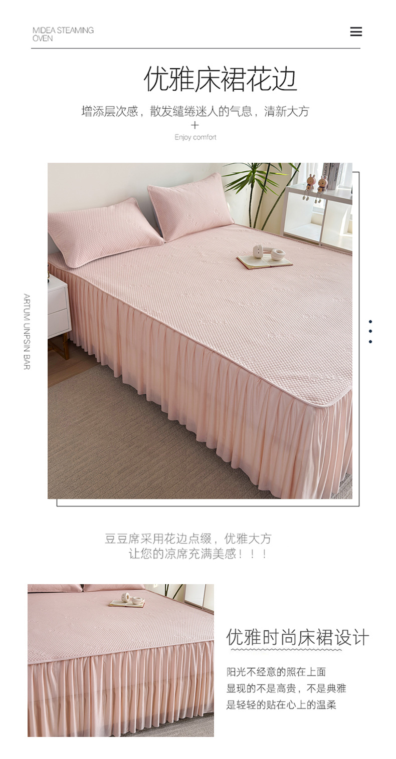 商品名称:柏薇 2025春夏新款5D席豆豆床裙款凉席席子 时尚-粉