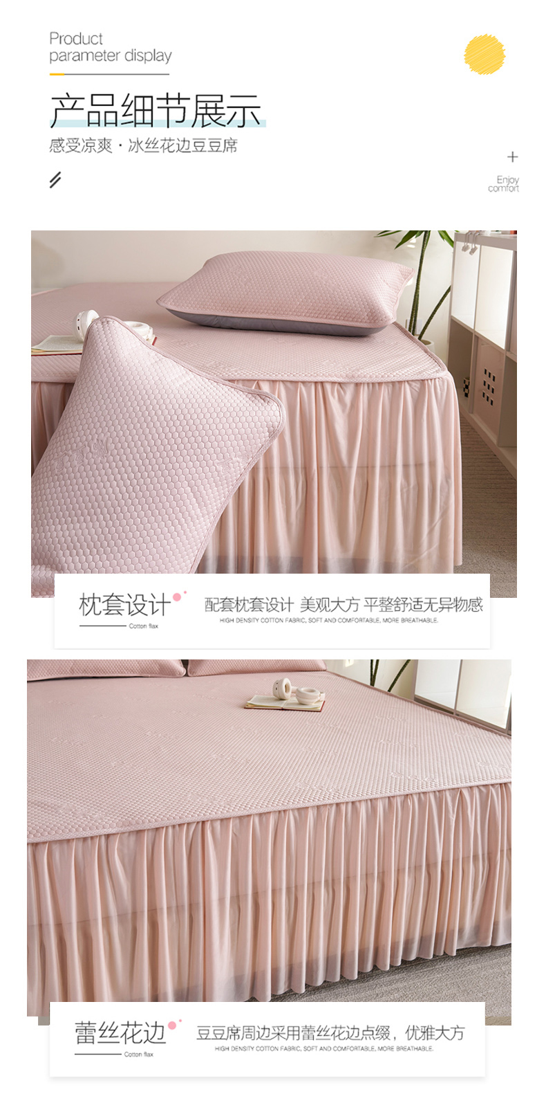 (总)柏薇 2025春夏新款5D席豆豆床裙款凉席席子,时尚-粉,时尚-灰,时尚-蓝,时尚-绿,时尚-银灰