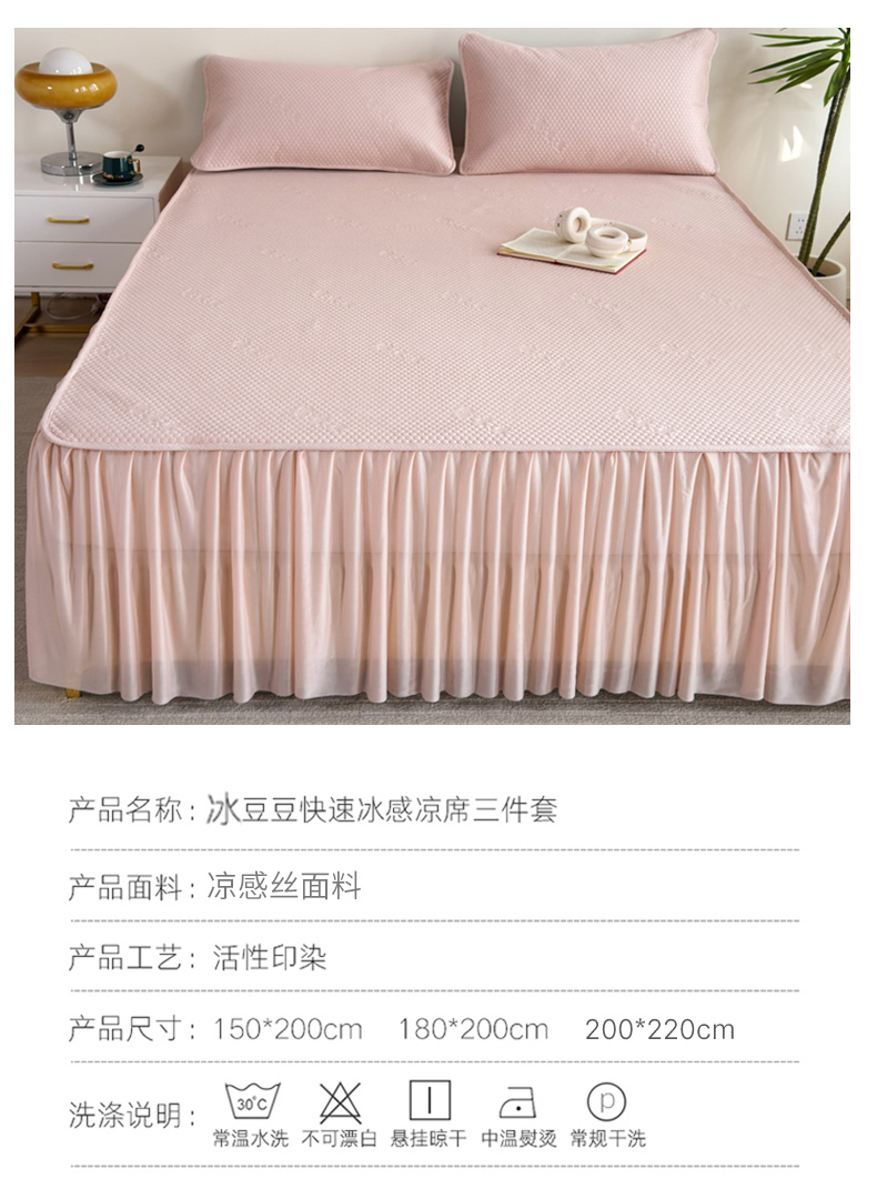 (总)柏薇 2025新款3D豆豆凉席冰丝席按摩席夏凉席床单床裙款三件套热销款,冰川蓝床单款,海湾蓝床单款,抹茶绿床单款,樱花粉床单款,月光灰床单款,冰川蓝床裙款,海湾蓝床裙款,抹茶绿床裙款,婴花粉床裙款,月光灰床裙款